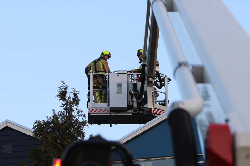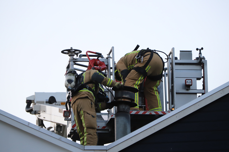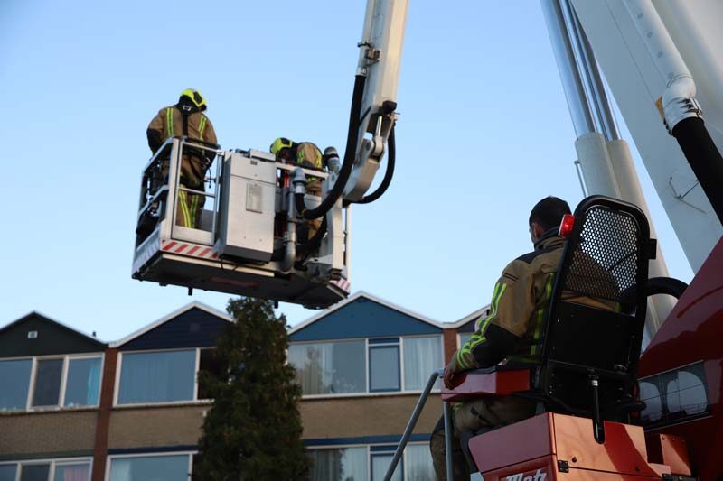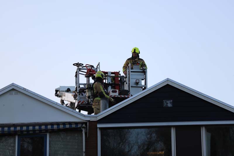 De brandweer kwam met spoed ter plaatse en stelde de hoogwerker op. Met de hoogwerker heeft de brandweer het dak bereikt en hebben zij de schoorsteen geramoneurd.