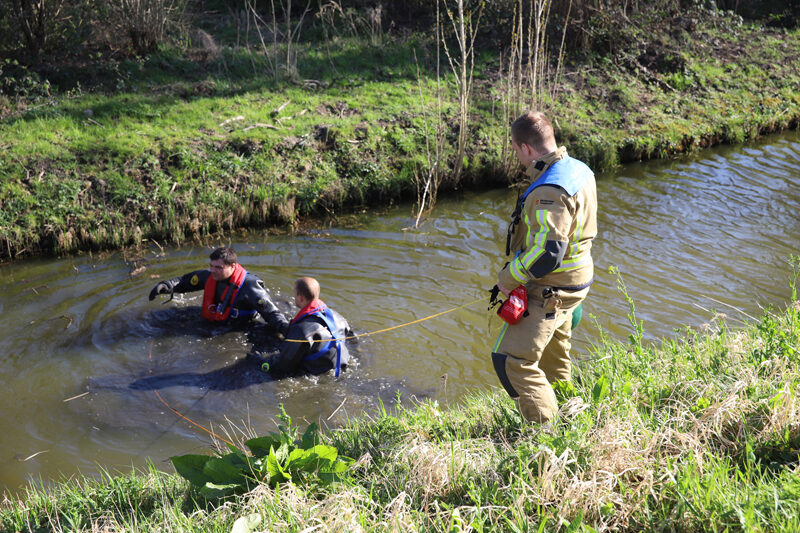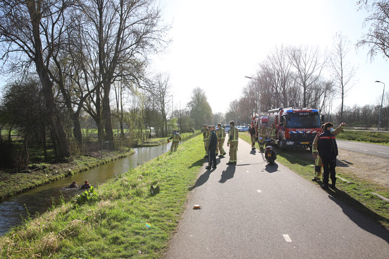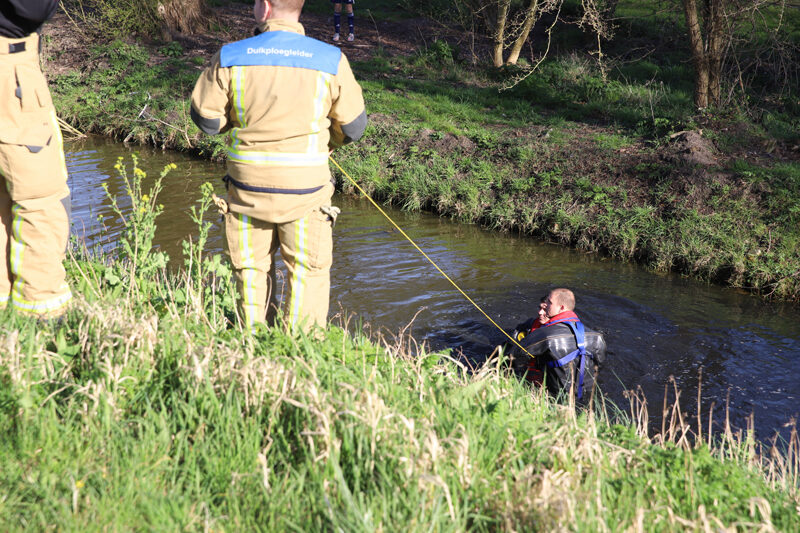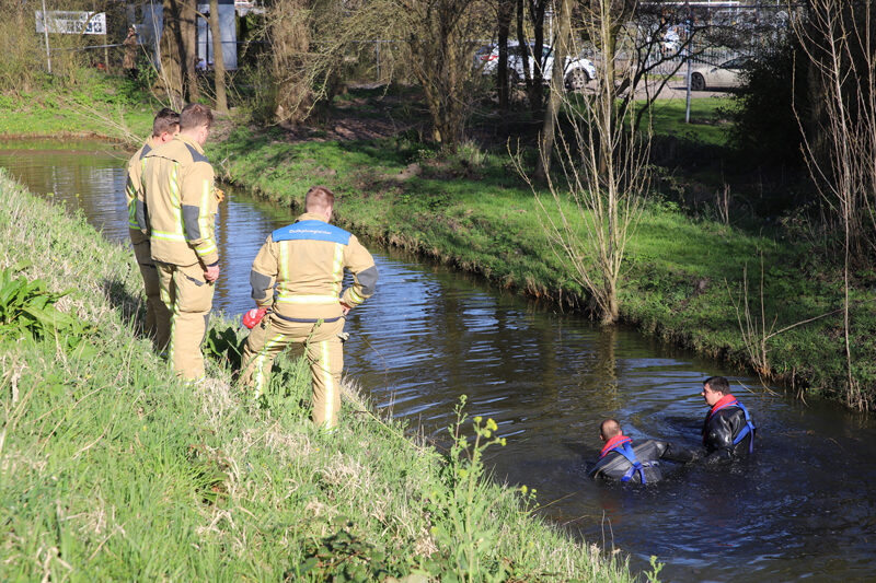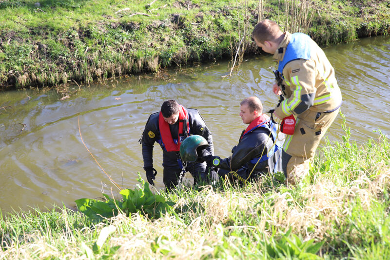 Ter plaatse lag er een scooterhelm in/bij de waterkant, brandweermannen in waadpakken hebben gezocht in het water naar een eventueel persoon, er is uiteindelijk niemand aangetroffen in het water.