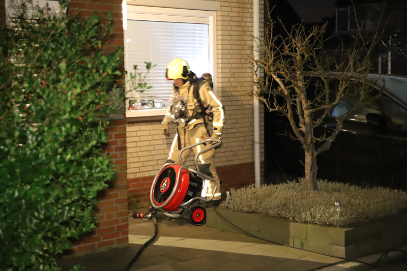 Brandweerlieden hebben met behulp van een ventilator de rook uit de woning geblazen. Wat er in brand heeft gestaan, is niet bekend.
