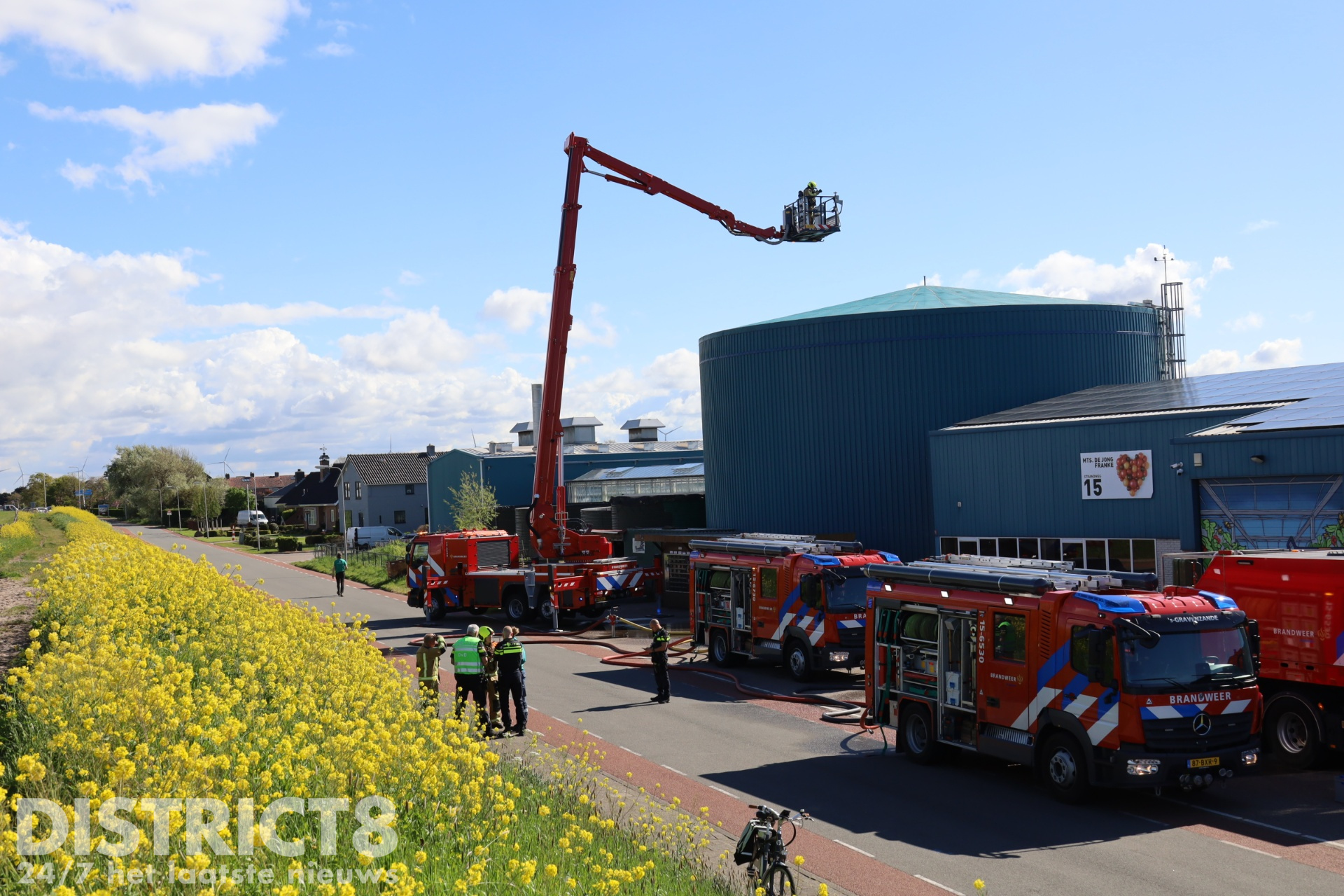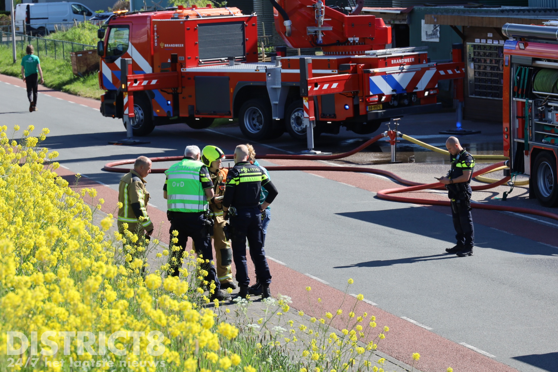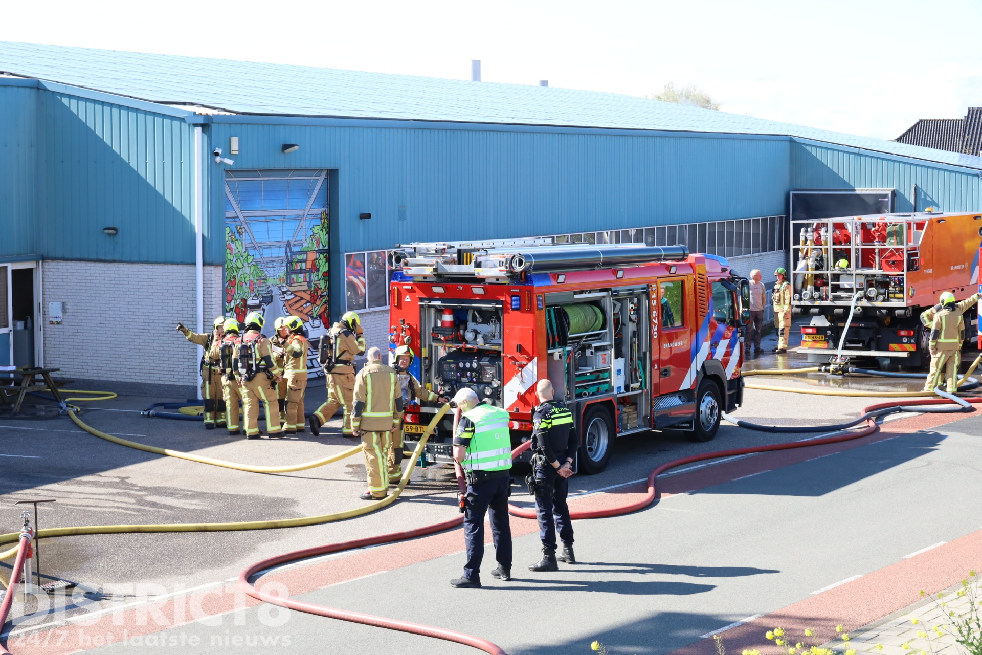 Bij aankomst troffen zij brand aan in een technische ruimte van een tuinbouwbedrijf. Bij de brand zijn bepaalde chemicaliën betrokken. Volgens een woordvoerder van de brandweer vormt dit geen gevaar voor de omgeving, maar de weg is wel afgesloten voor al het verkeer.