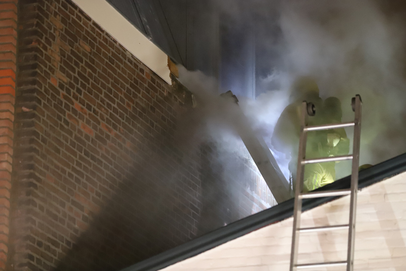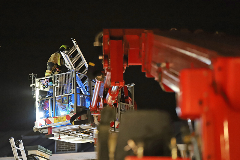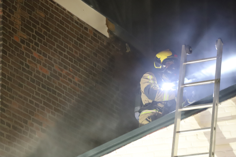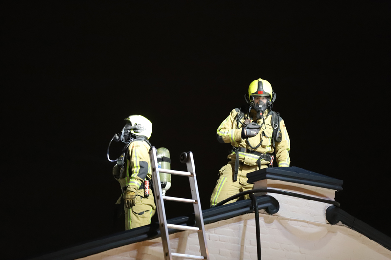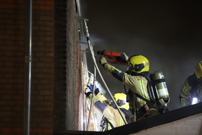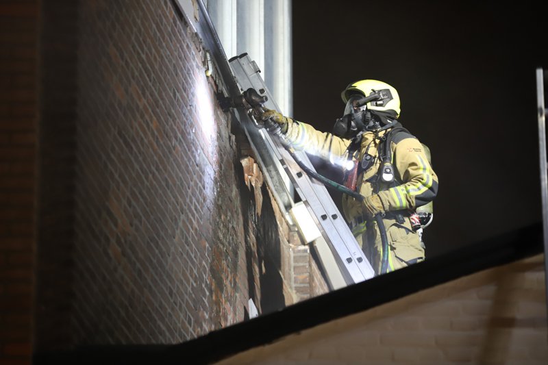 De brand woedde in een spouwmuur, mogelijk is de brand ontstaan door een gaskachel. De brand was erg moeilijk te bereiken. Door gaten in de muur te maken is het gelukt op de brand te lokaliseren. Met speciale blusmiddelen wordt de brand geblust.