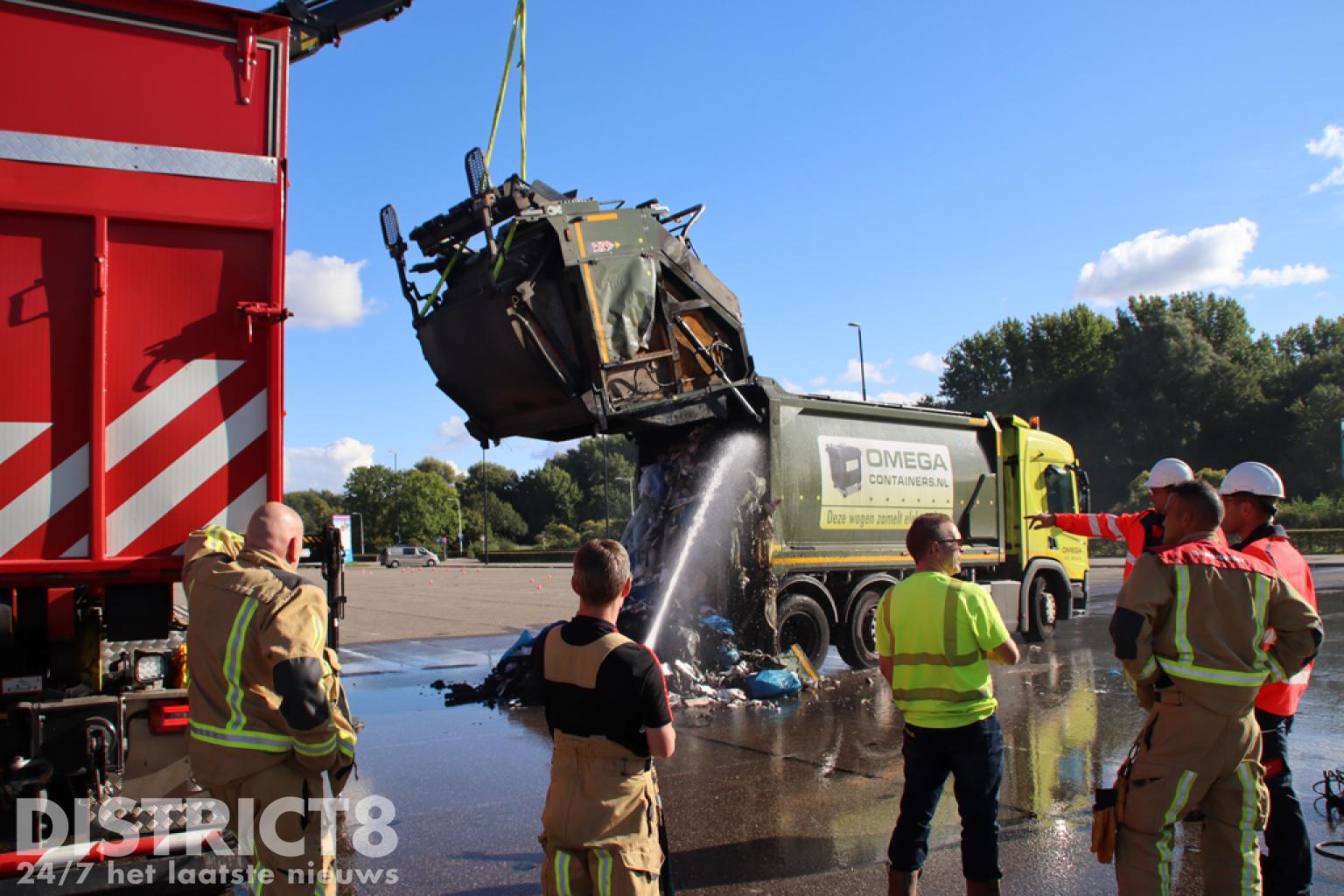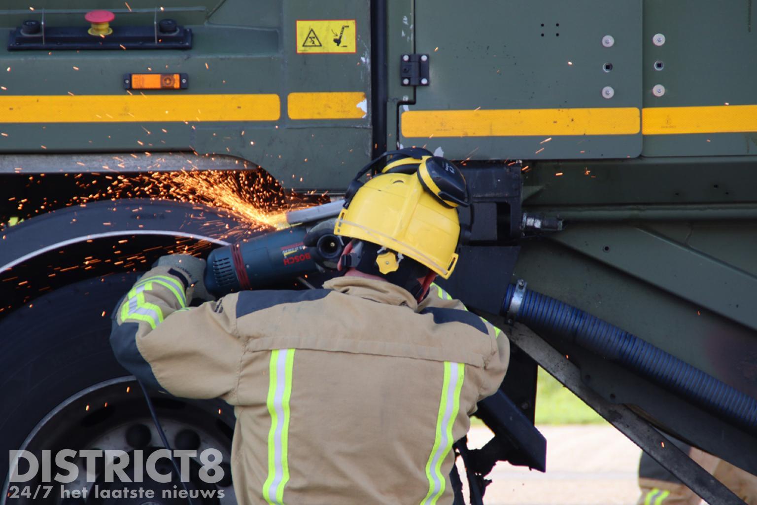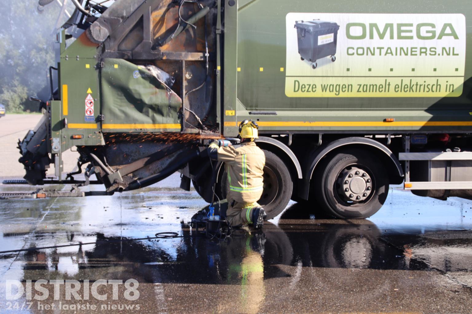 In het voertuig ligt ruim aan 7 ton materiaal, laat een medewerker van het bedrijf weten. De brandweer heeft slijpwerkzaamheden uitgevoerd om de klep van de vuilniswagen te openen. Uiteindelijk lukte het met behulp van de kleine kraan de bak te openen en het afval uit de vuilniswagen te krijgen. Hierop kon de inhoud worden geblust.