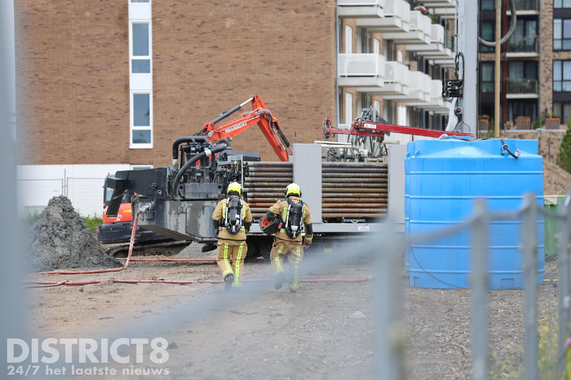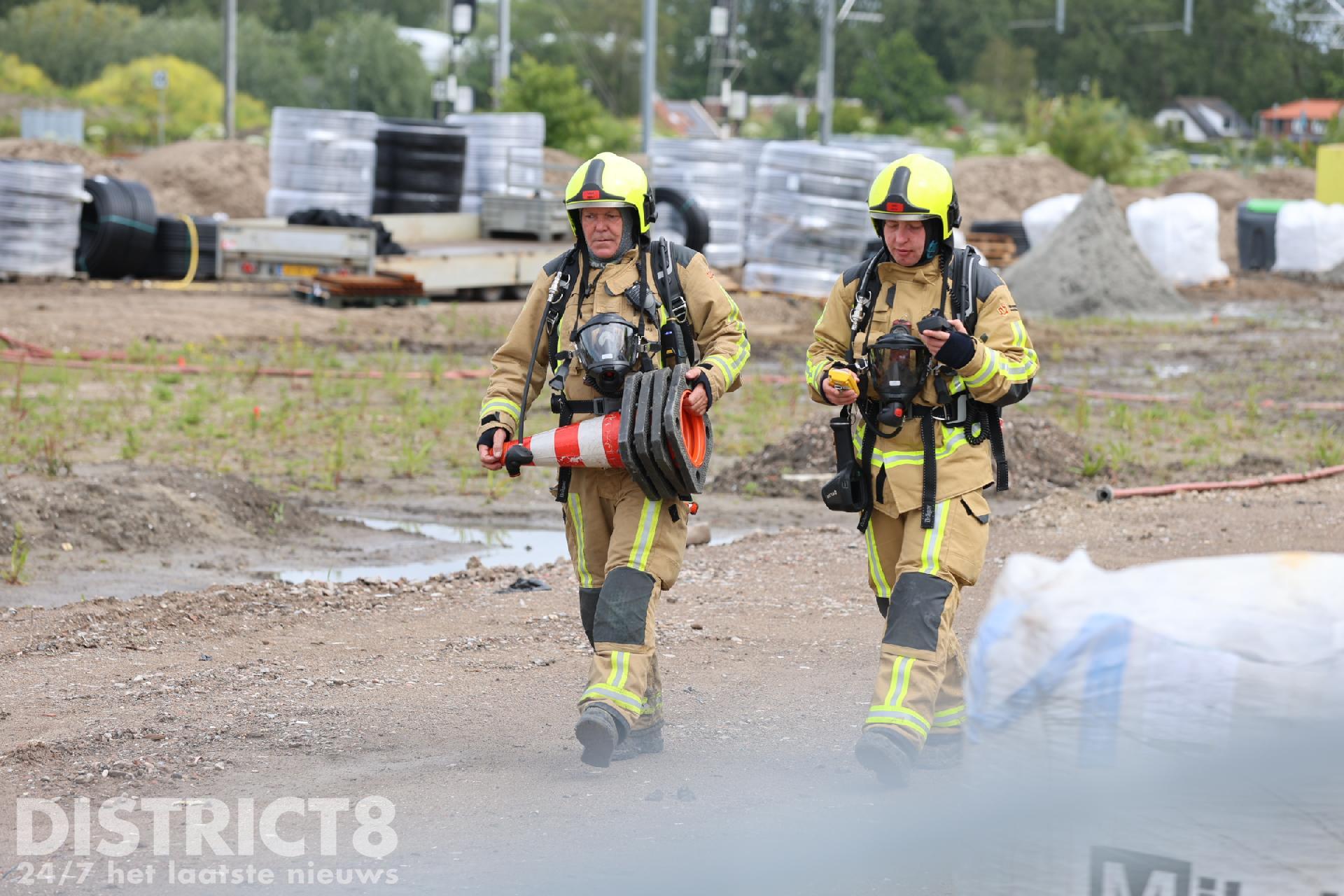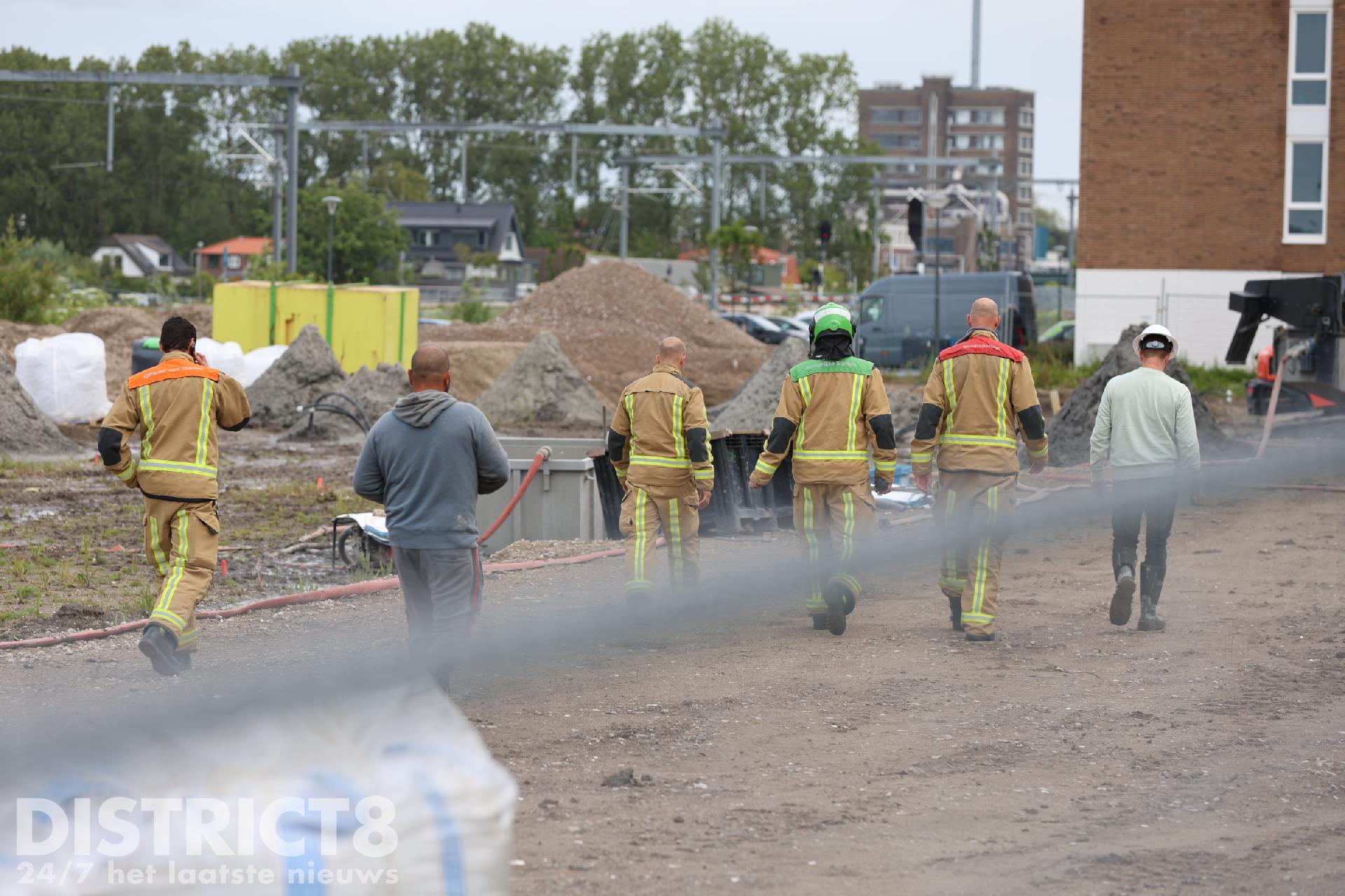 Brandweermannen hebben rondom een installatie op het bouwterrein metingen gedaan. Hieruit kwamen wel verhoogde waardes, maar deze blijken niet gevaarlijk te zijn.