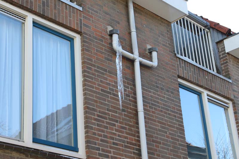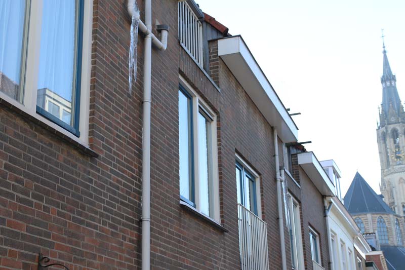 Delft – Aan de Trompetstraat in Delft heeft de brandweer zaterdagmiddag 13 februari een tweetal flinke ijspegels verwijderd.