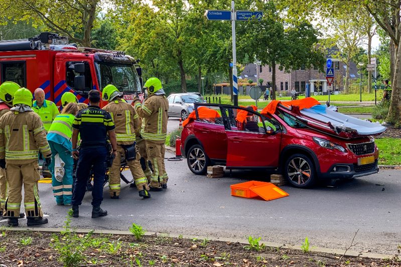 Vlaardingen – De brandweer heeft maandagmiddag het dak van een auto verwijderd op de rotonde van de Lepelaarsingel met de Amsterdamlaan.