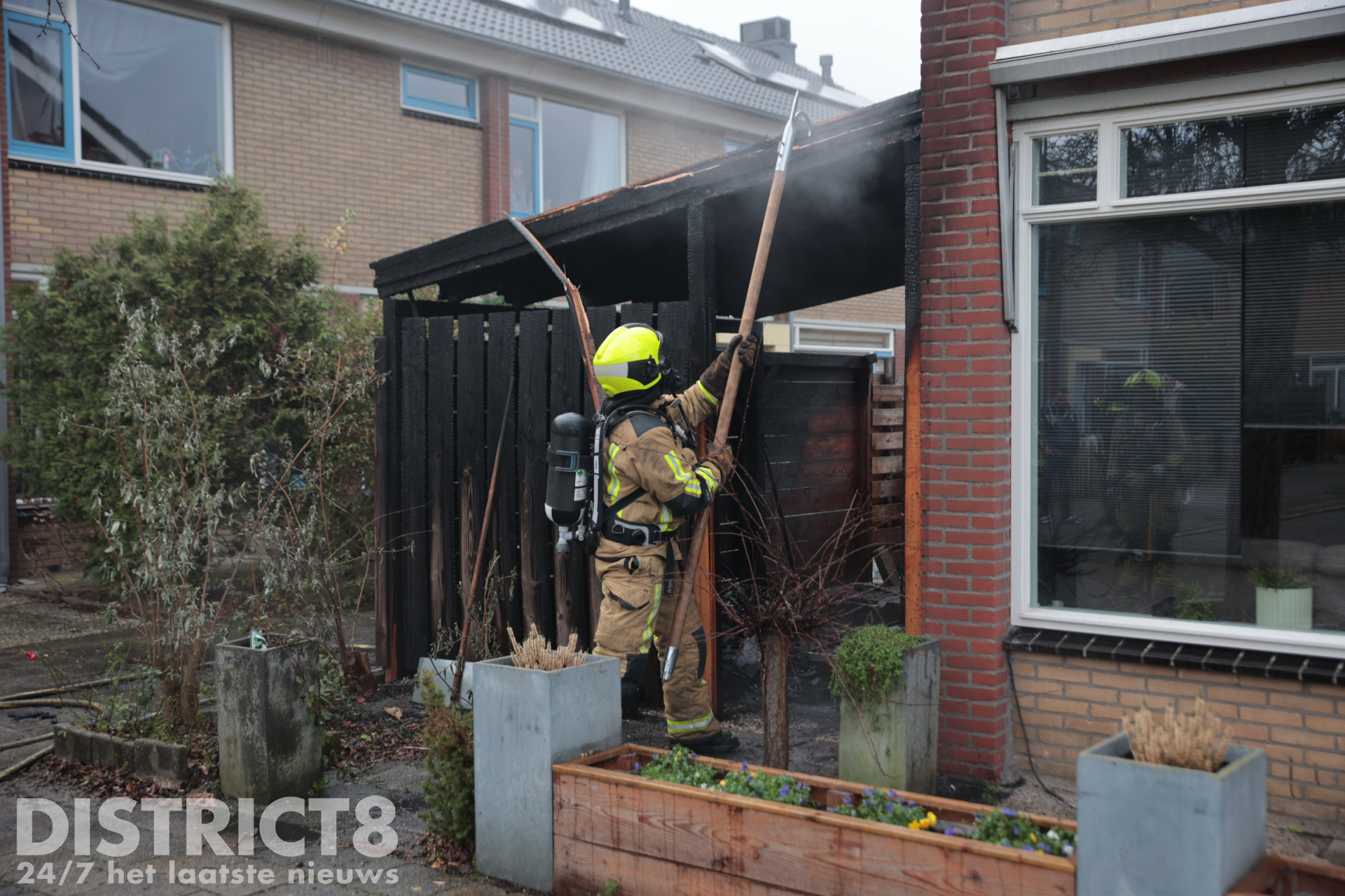 De brandweer kwam snel ter plaatse en wist door snelle inzet de schade te beperken. De brand bleef daardoor beperkt tot de overkapping en de gevel.