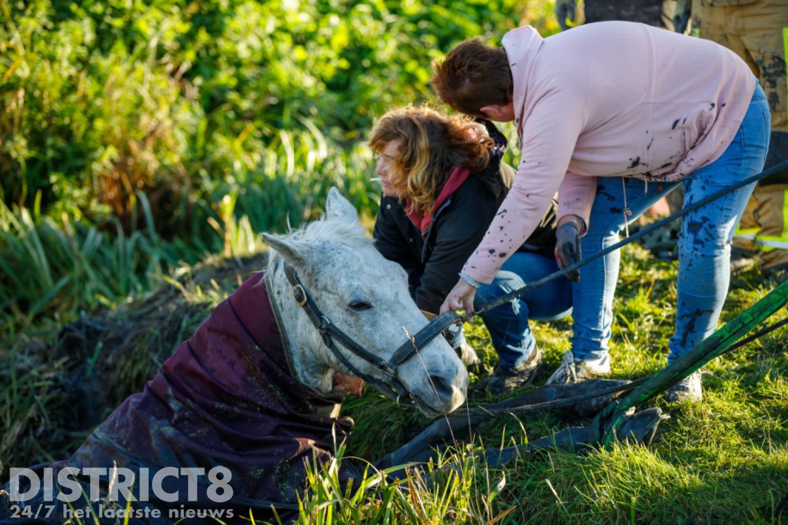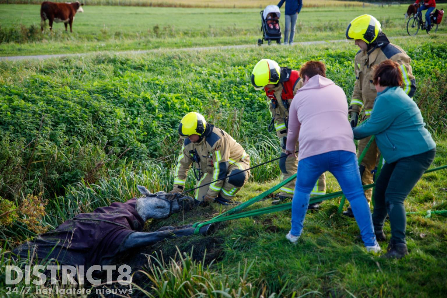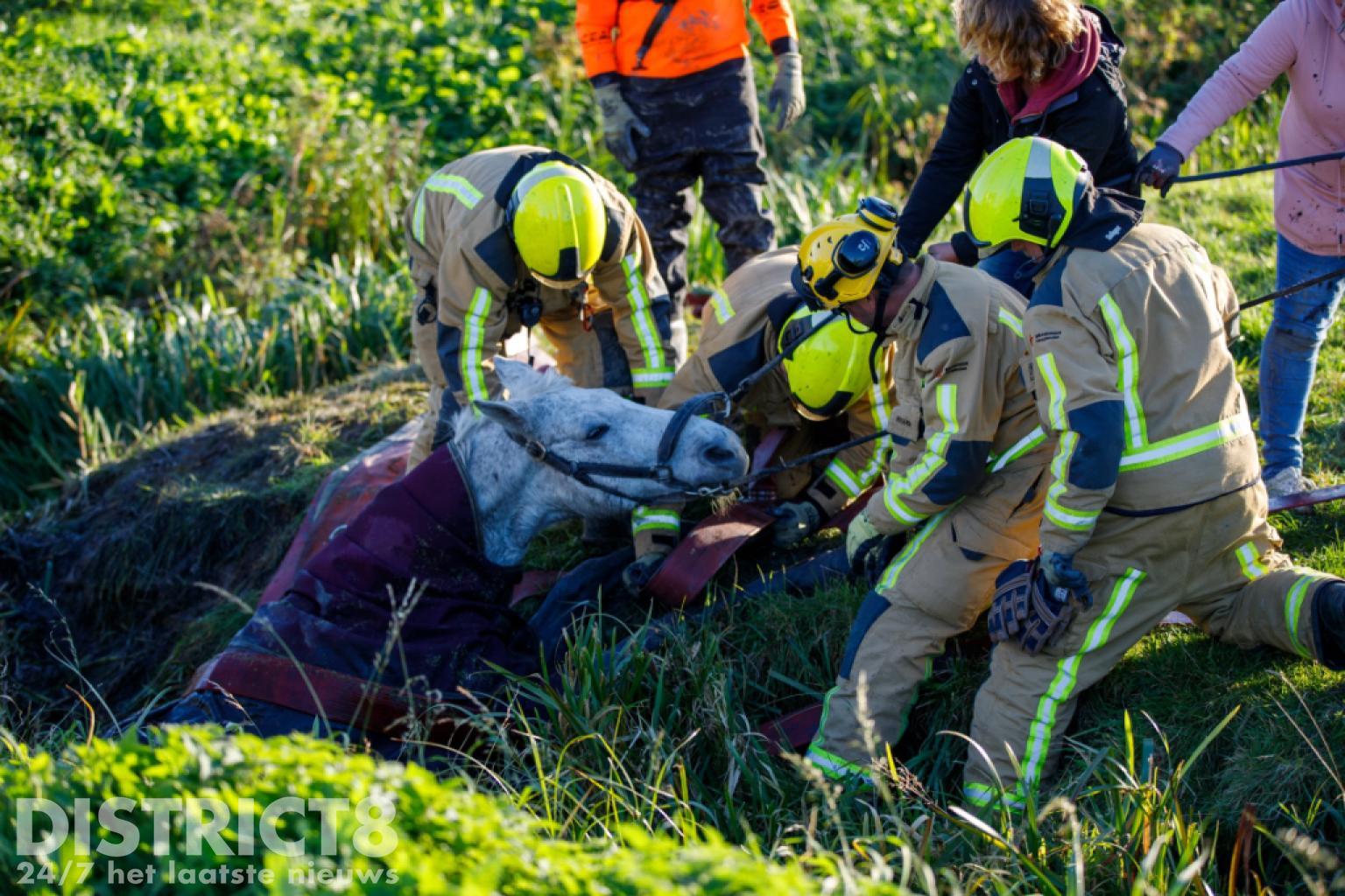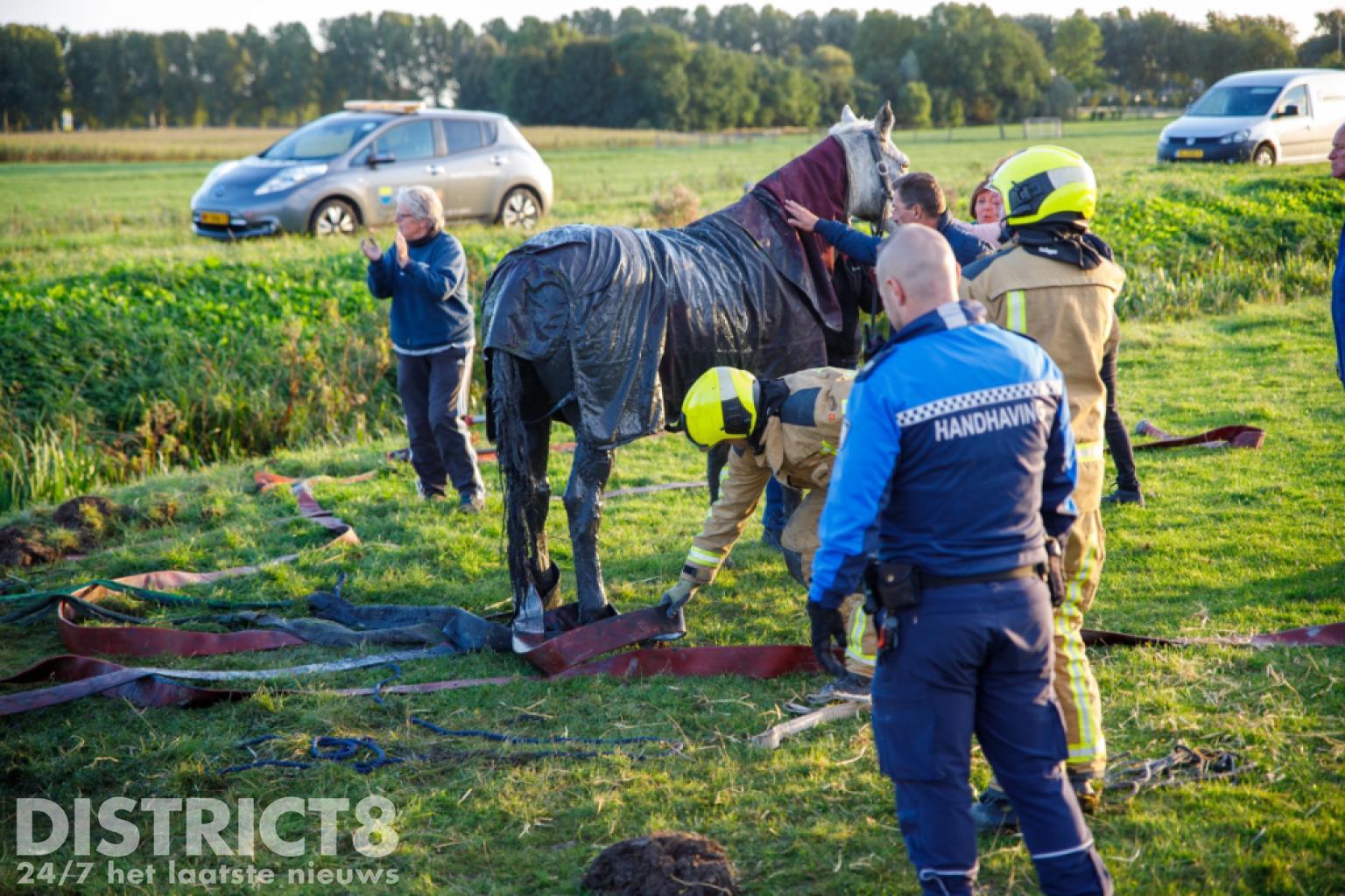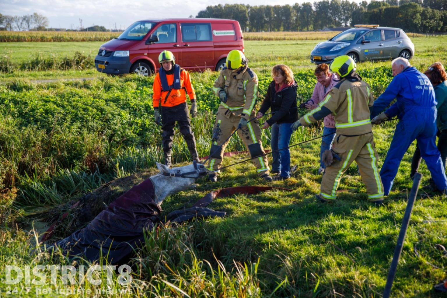 De brandweer had grote moeite om het paard uit zijn benarde situatie te bevrijden. Een hulpverleningsvoertuig met kraan van brandweer De Lier werd erbij gehaald. Maar omdat het paard in zo’n benarde positie lag, lukte het de brandweer met hulp van omstanders pas na 1,5 uur het paard weer op het droge te krijgen.