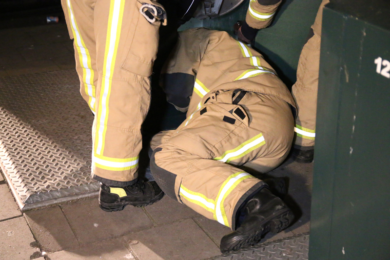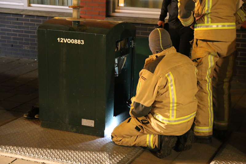 De brandweer werd gealarmeerd om een zoektocht te starten. Doormiddel van een lange stok en een kijkje vanuit boven in de container werd een poging gedaan om de telefoon te vinden. Dit helaas zonder resultaat.