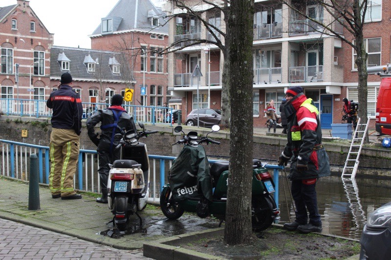 De brandweer besloot twee scooters uit het water te halen. De overige scooters zouden op een later moment moeten worden opgedoken.