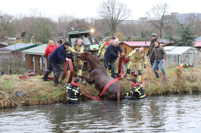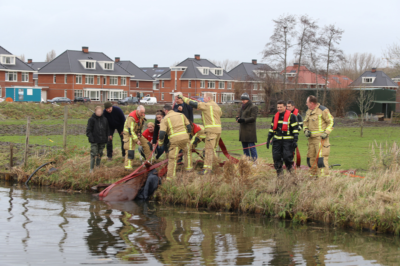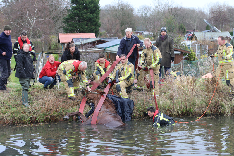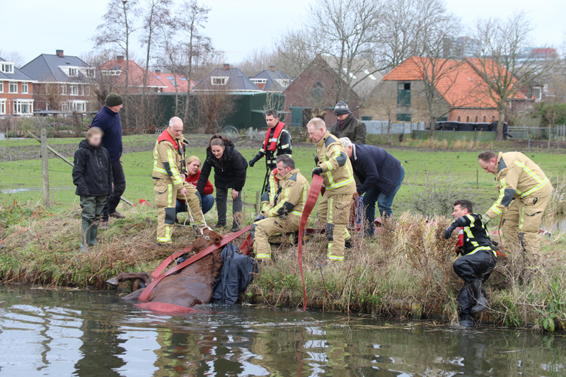 De brandweer van Wateringen kwam ter plaatse en heeft met slangen geprobeerd het paard uit het water te trekken. Omdat dit niet lukte werd er een speciale terrein wagen van de brandweer gealarmeerd.