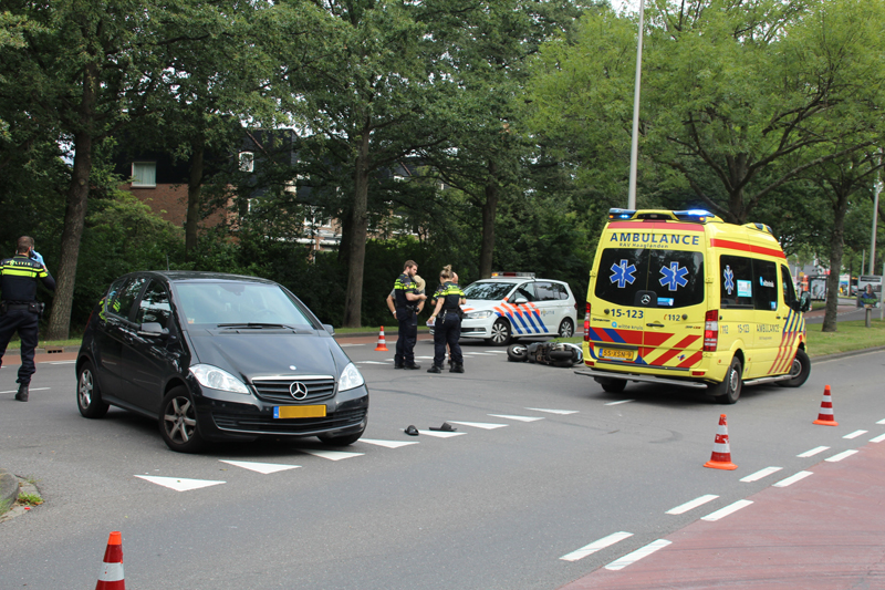 Het ongeluk gebeurde even na elf uur. Door onbekende oorzaak kwamen de twee met elkaar in botsing. De brommerrijder raakte gewond en is door ambulancepersoneel naar het ziekenhuis vervoerd.