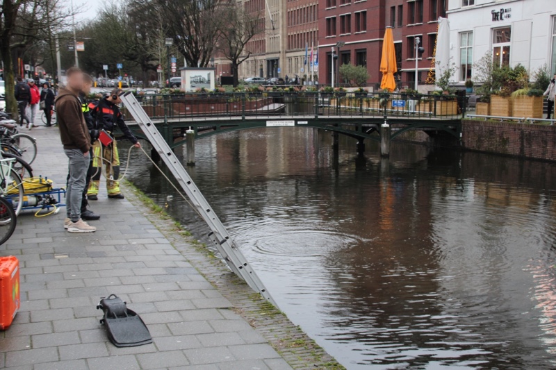 Den Haag – Aan de Mauritskade heeft de brandweer gezocht naar een portemonnee die in het water gegooid is.