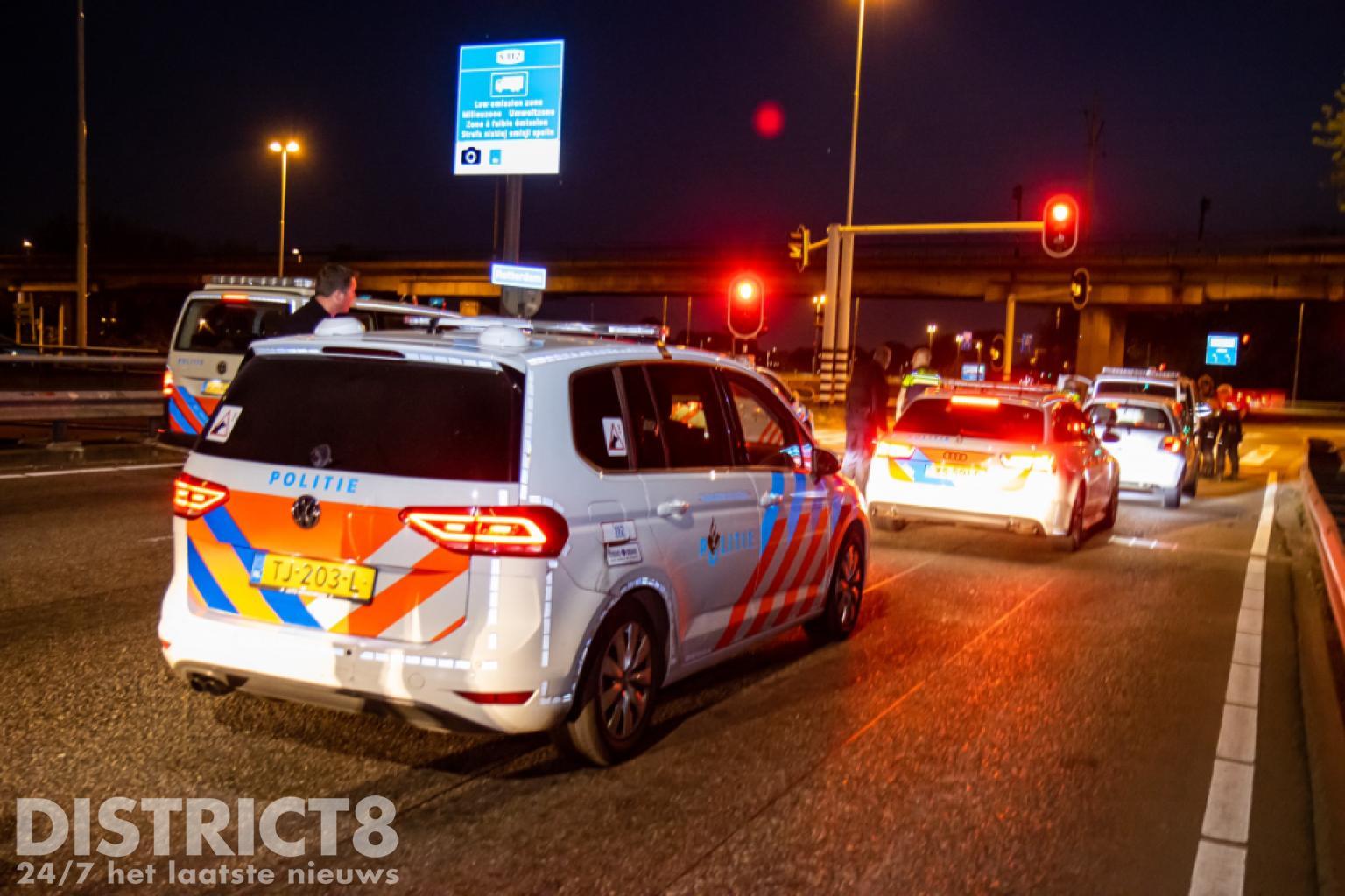 Agenten bleven het voertuig volgen totdat er genoeg politieauto’s achter het voertuig reden. Op de A20 kreeg het voertuig een stopteken en is meegenomen naar de afrit Schieplein. Daar is het voertuig ingeboxt. Middels een BTGV procedure (Benaderingstechniek Gevaarlijke Verdachten) is de bestuurder uit zijn auto gepraat.