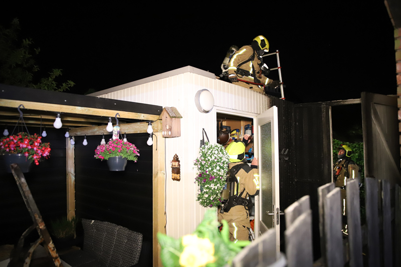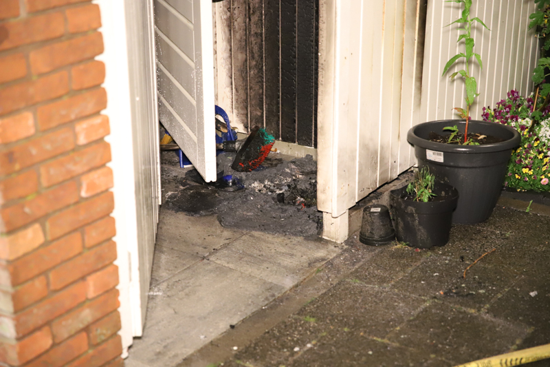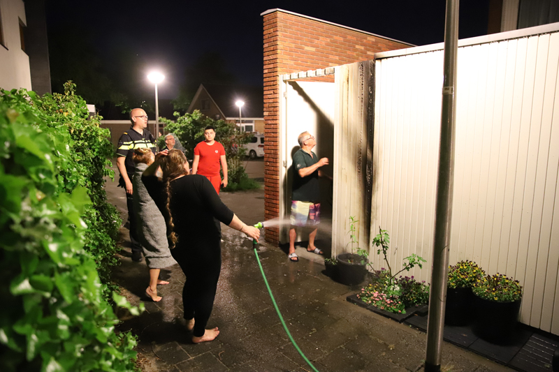 Even voor half één werden de hulpdiensten gealarmeerd voor een brand tegen de schuur en de schutting. Toen de brandweer arriveerde bleken de buren al een succesvolle bluspoging te hebben gedaan.