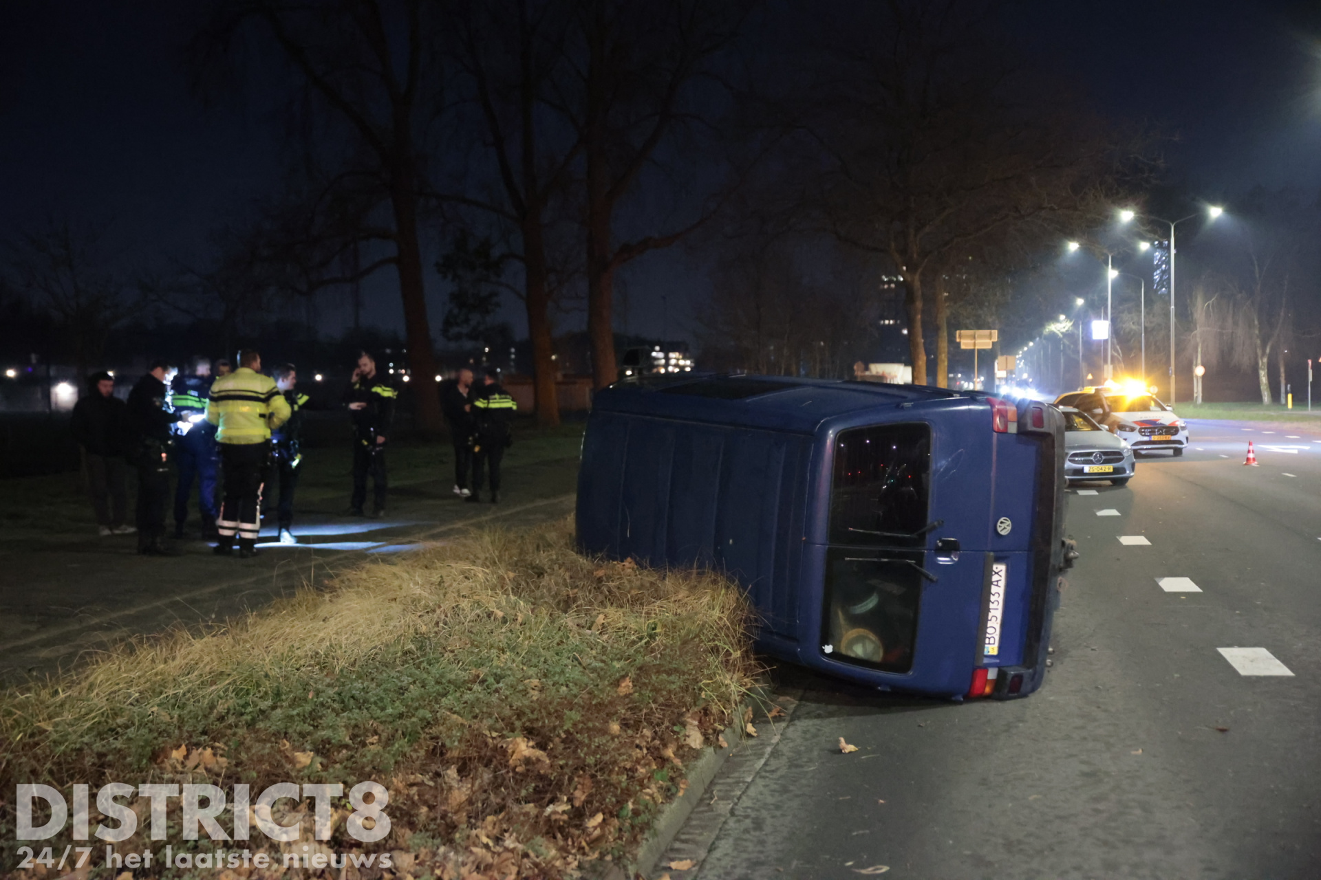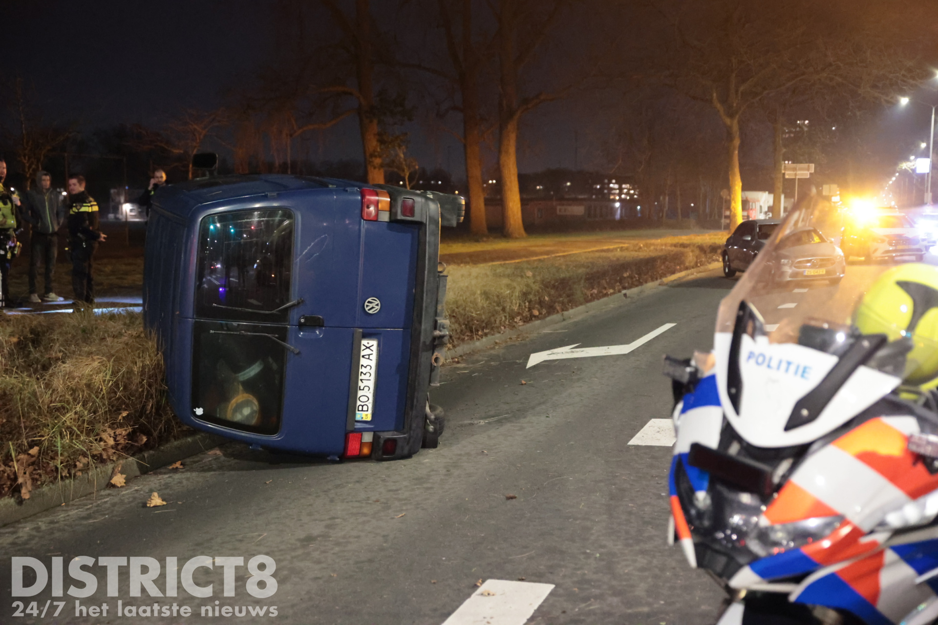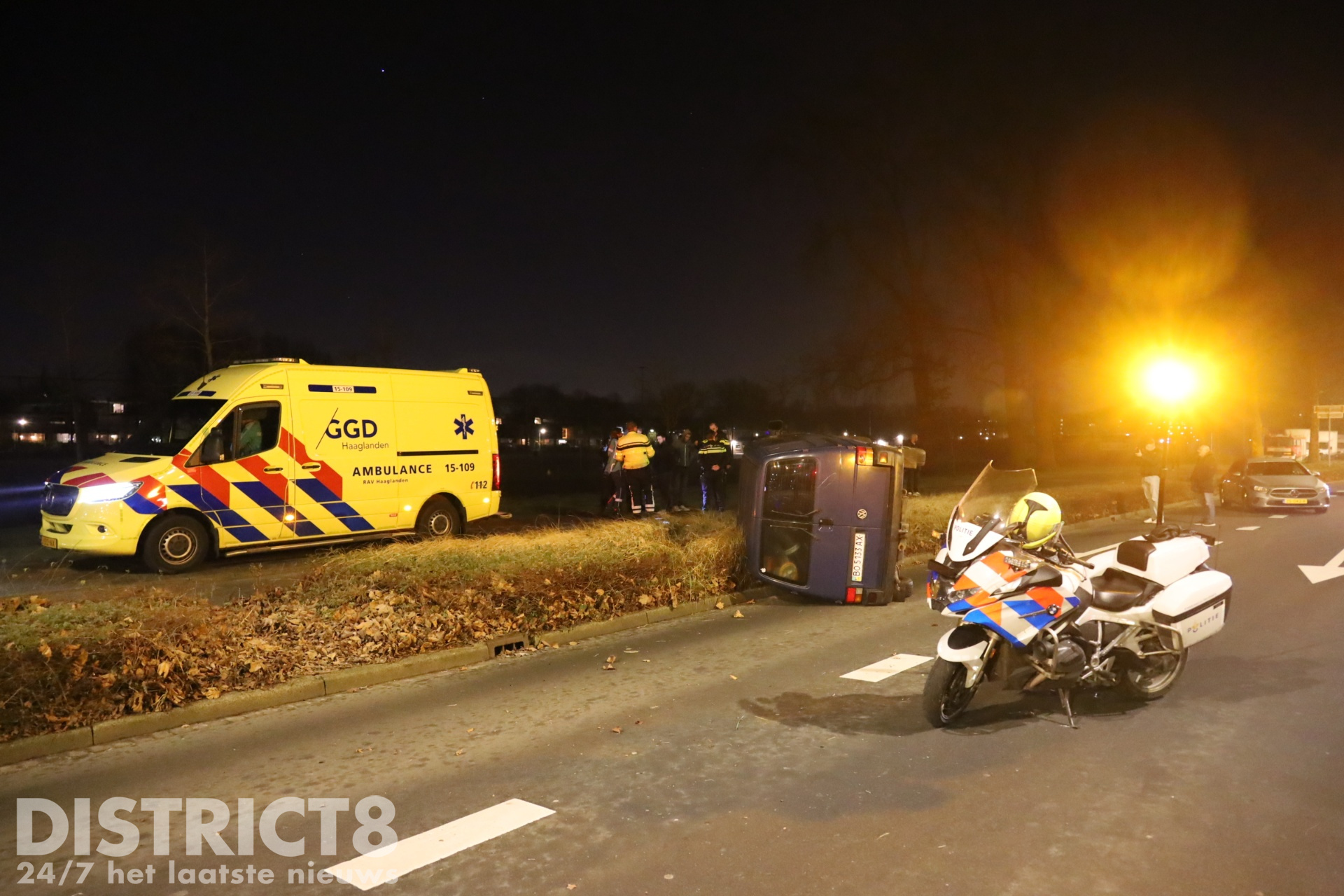 Voorburg – Bij een éénzijdig ongeval op de Prins Bernhardlaan in Voorburg is zondagavond 2 februari een busje op z’n kant terechtgekomen. De bestuurder van het busje raakte hierbij gewond.
