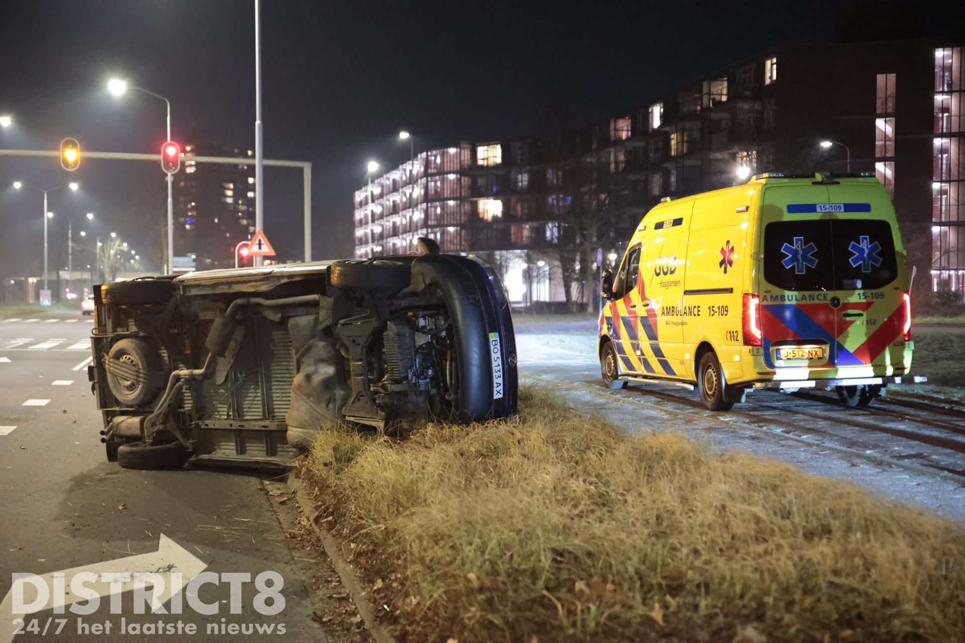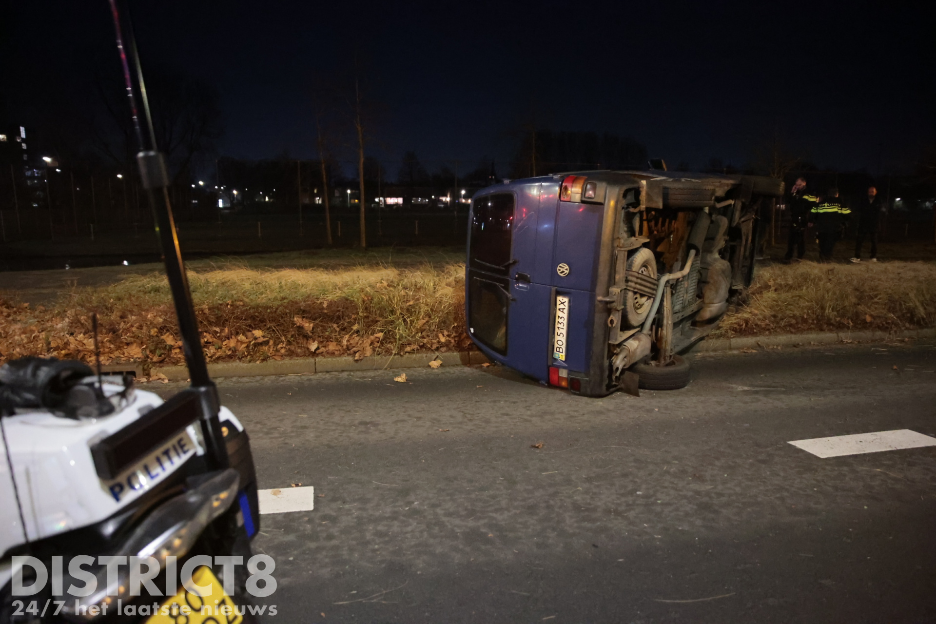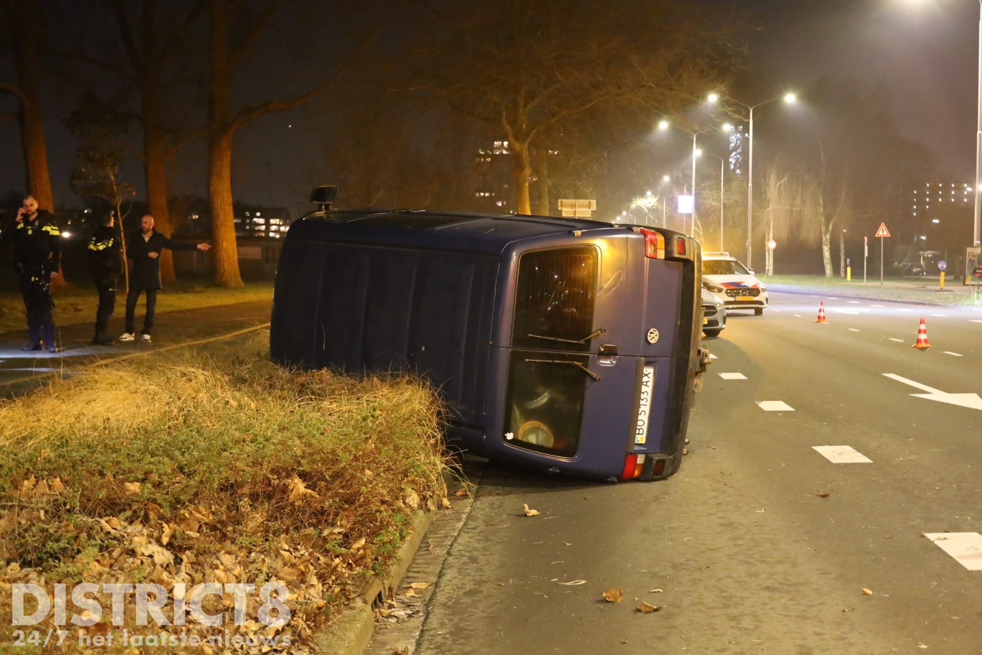 Voorburg – Bij een éénzijdig ongeval op de Prins Bernhardlaan in Voorburg is zondagavond 2 februari een busje op z’n kant terechtgekomen. De bestuurder van het busje raakte hierbij gewond.