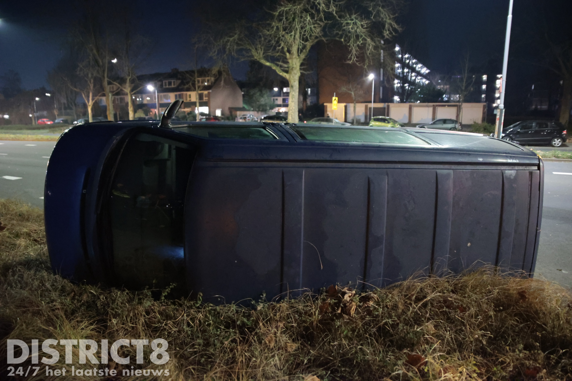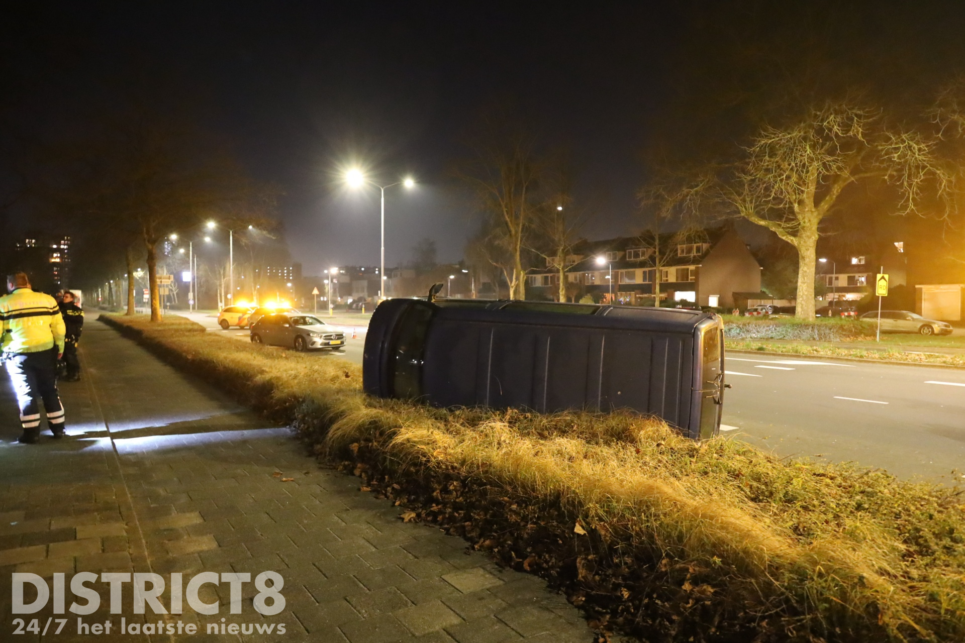 Rond kwart voor tien ging het mis. De bestuurder van het busje raakte door nog onbekende oorzaak een stoeprand tijdens het rijden, waardoor het busje uit balans raakte. Enkele meters verderop kwam het busje op z’n kant in de bosjes tot stilstand.