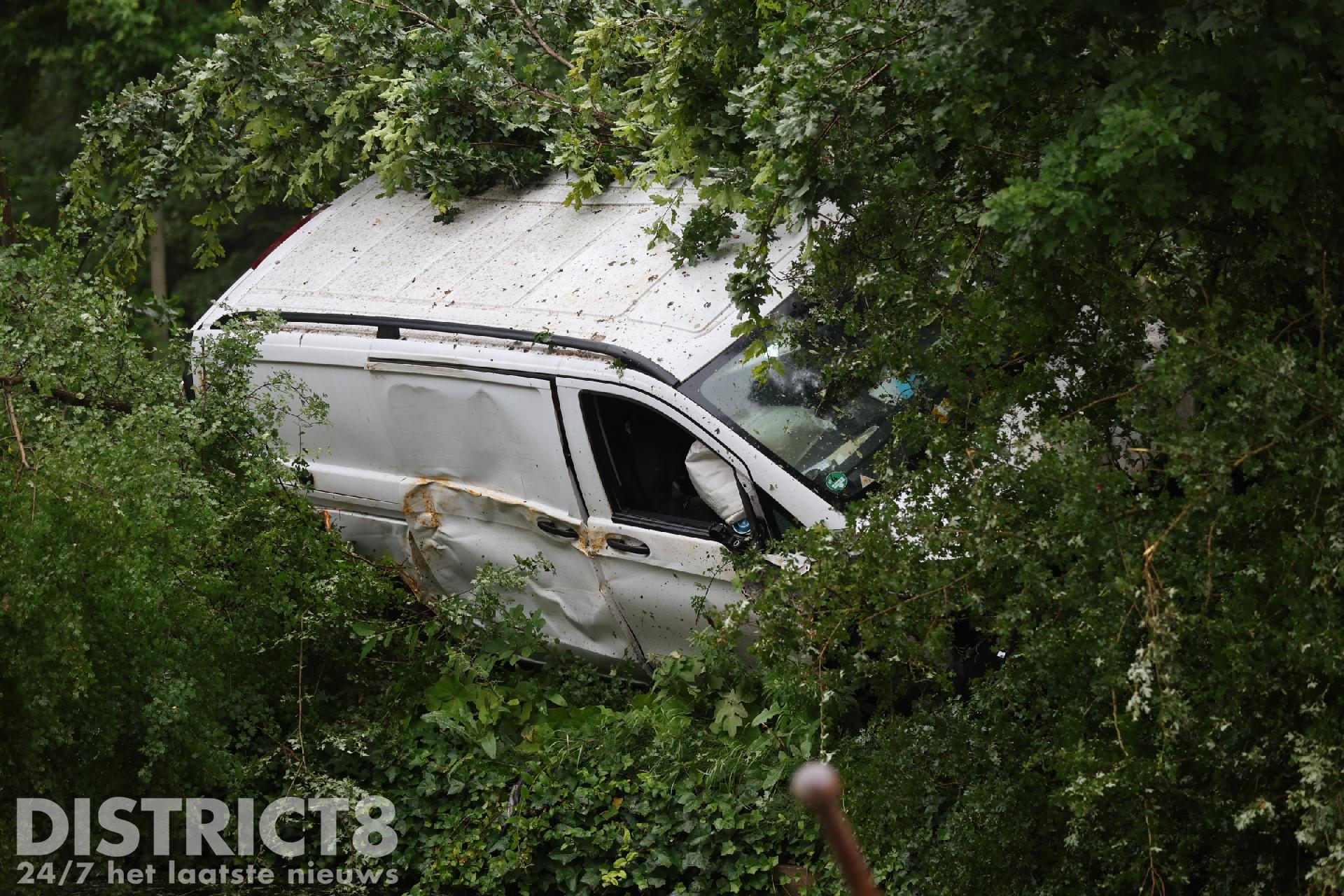 De hulpdiensten waaronder de brandweer kwamen met spoed ter plaatse. Één persoon is ter plaatse gecontroleerd in de ambulance, maar hoefde niet mee naar het ziekenhuis. Het busje is langs de waterkant vast komen te zitten in de bosschages.