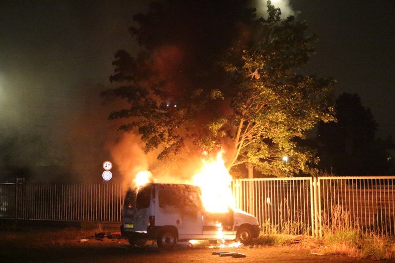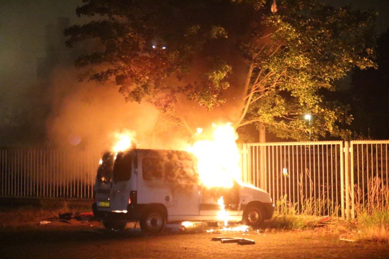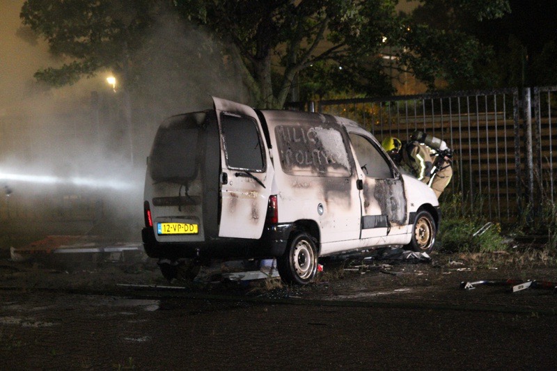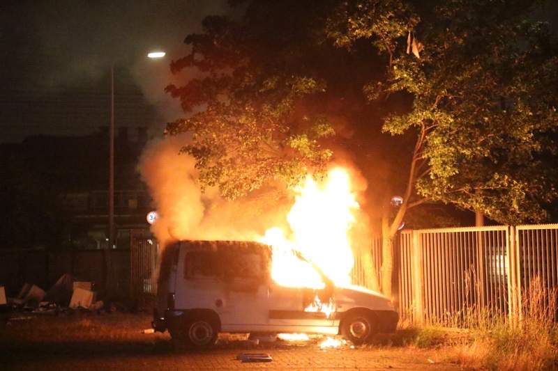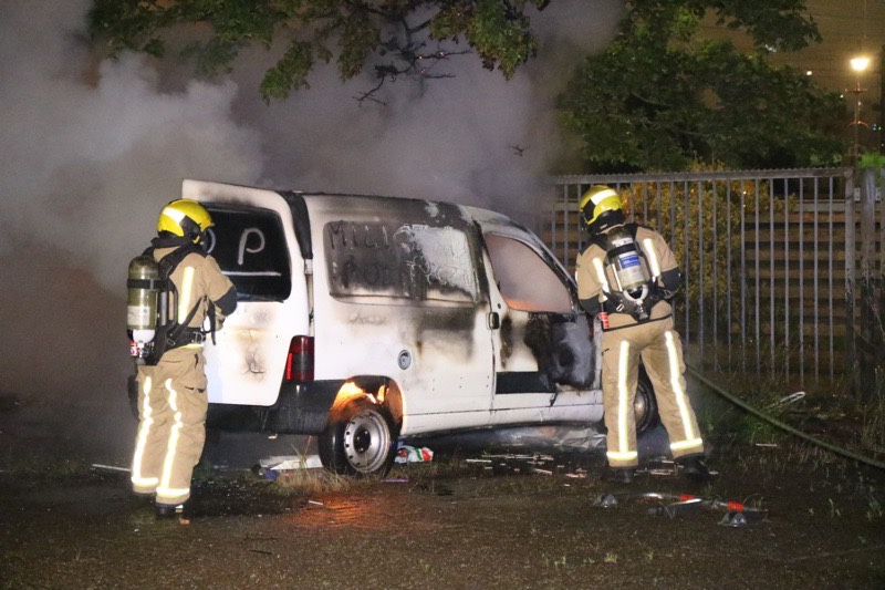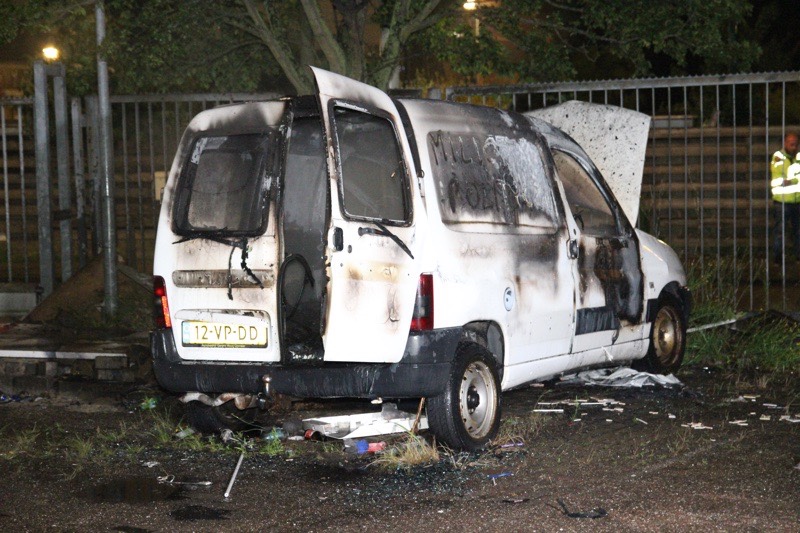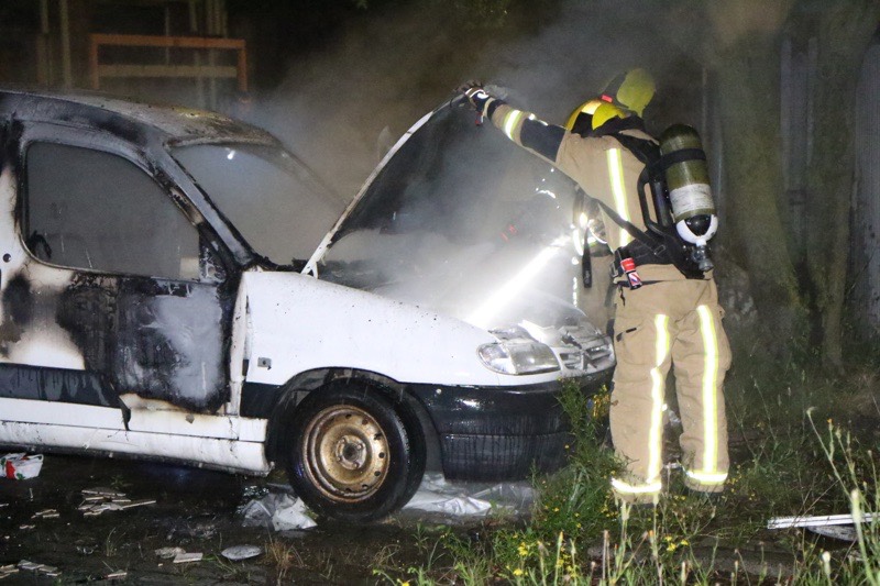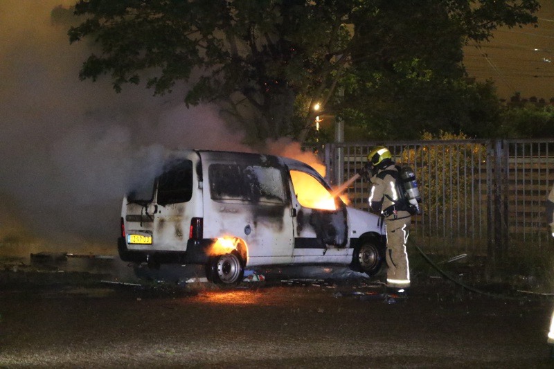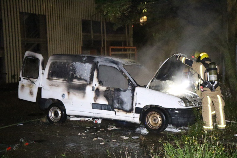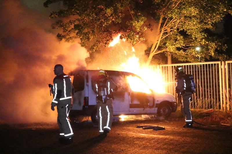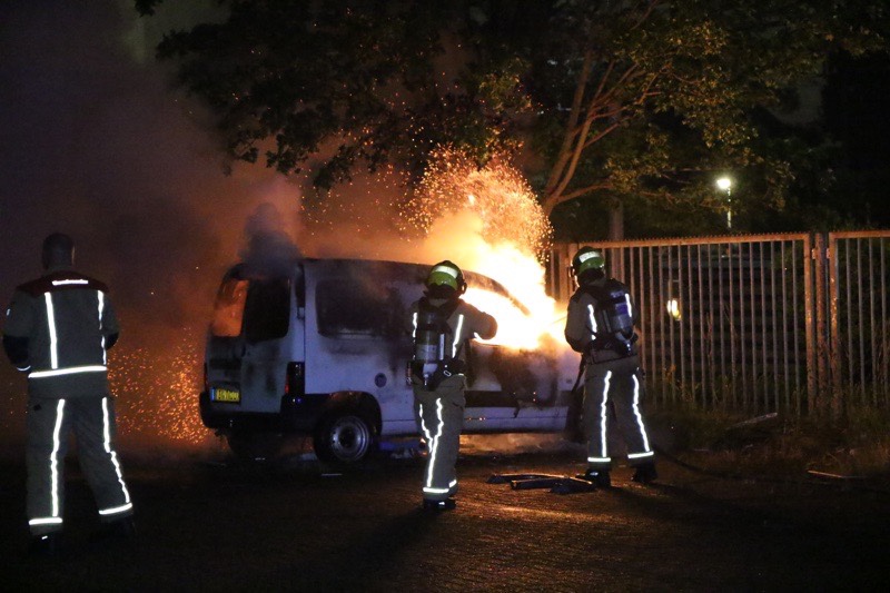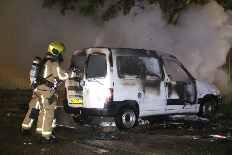 De brandweer kwam snel ter plaatse, maar kon niet voorkomen dat het busje volledig uitbrandde.