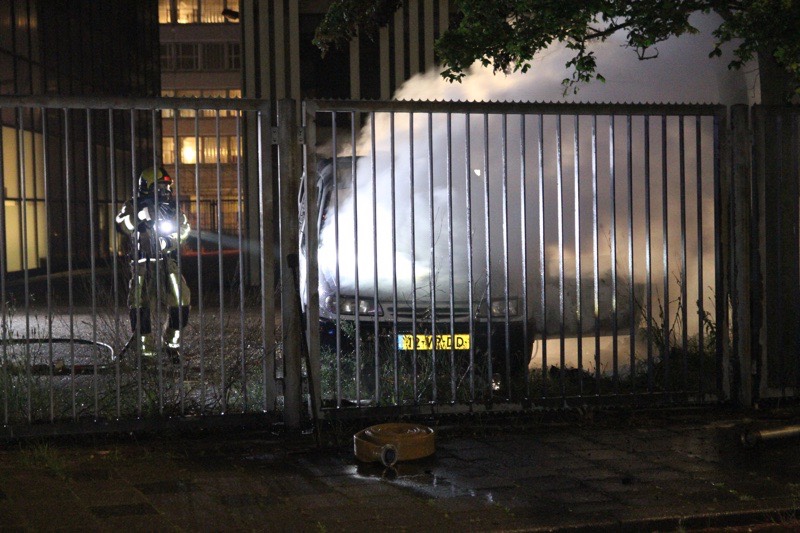 Op het terrein zijn al vaker auto’s in brand gestoken. Ook ditmaal gaat men uit van brandstichting.