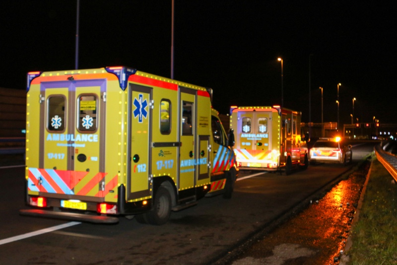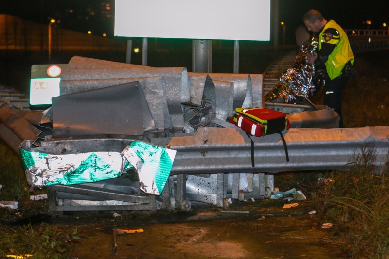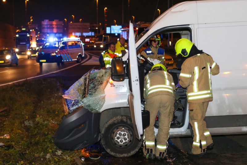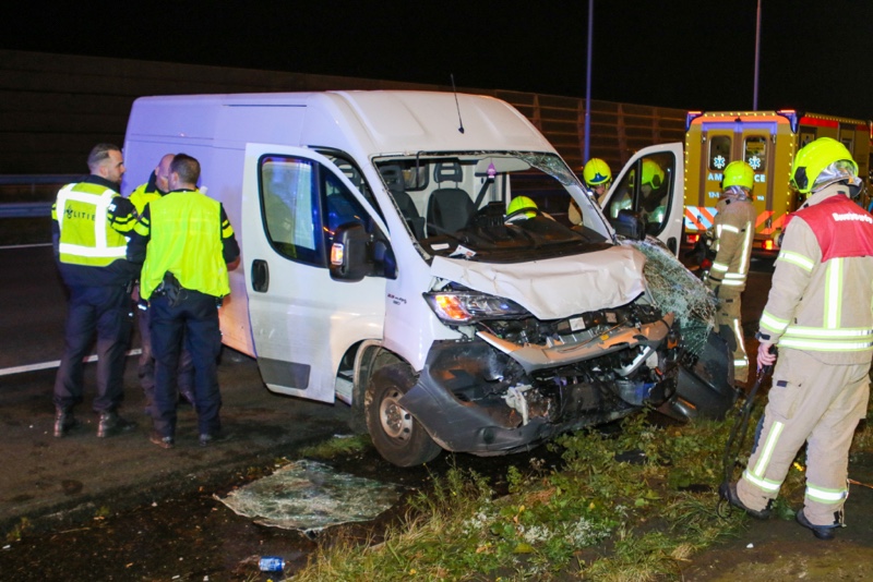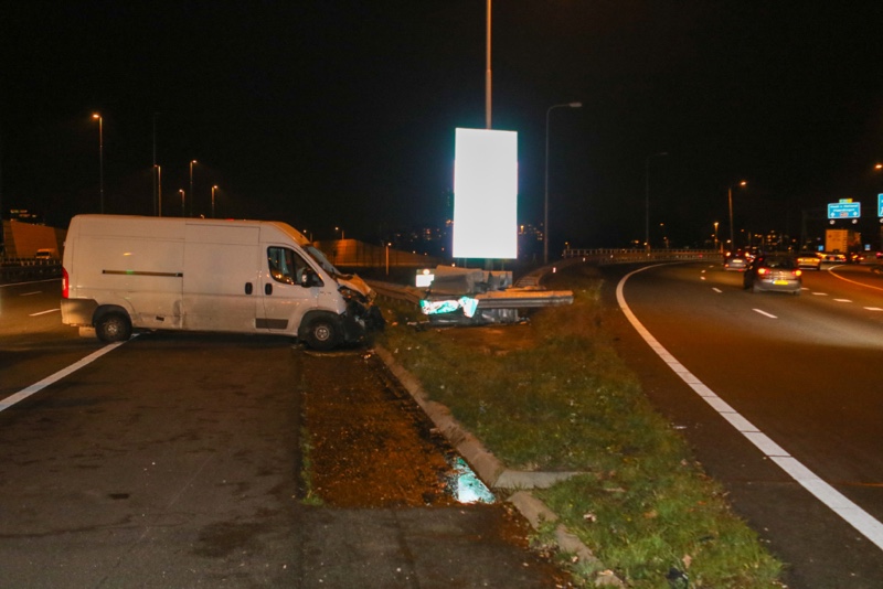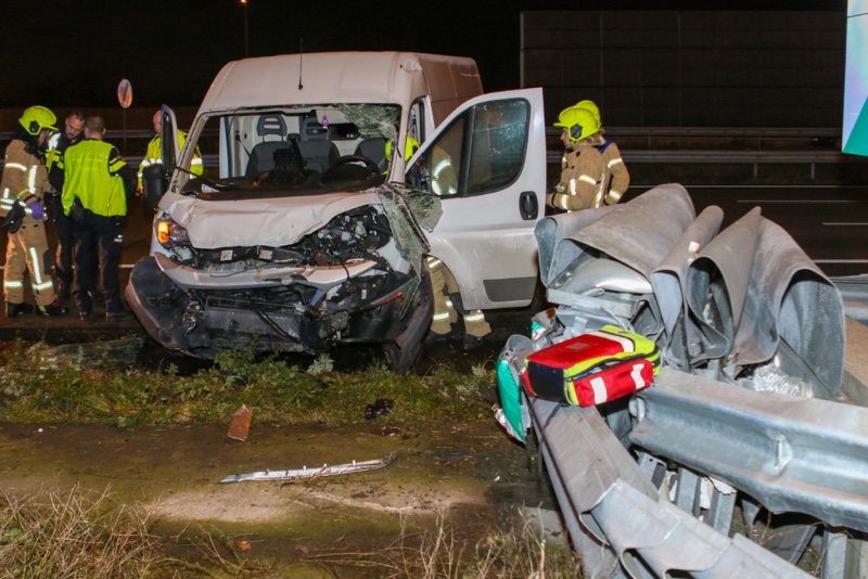 De bestuurder reed met een busje op de splitsing van de snelweg richting Hoek van Holland en Den Haag tegen een Rimob (rimpelbuisopstakelbeveiliger) aan. De weg richting Den Haag is tijdelijk afgesloten geweest. Voor de gewonden is een ambulance ter plaatse gekomen. Ook de brandweer kwam met spoed ter plaatse voor een mogelijke beknelling, maar alle inzittenden kon zelfstandig het voertuig verlaten. De schade aan zowel Rimob als busje is groot.