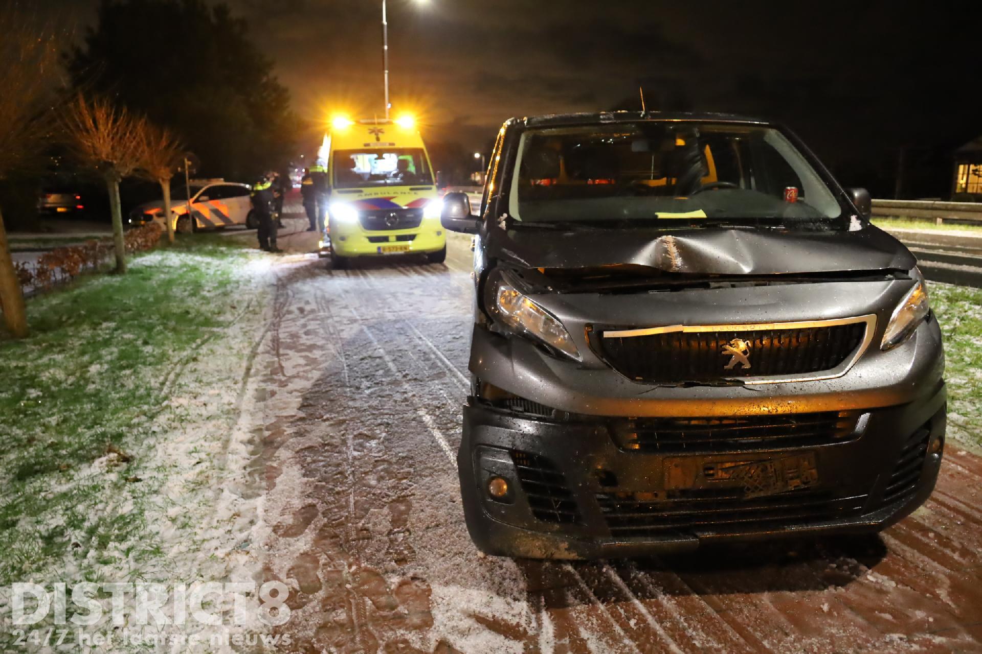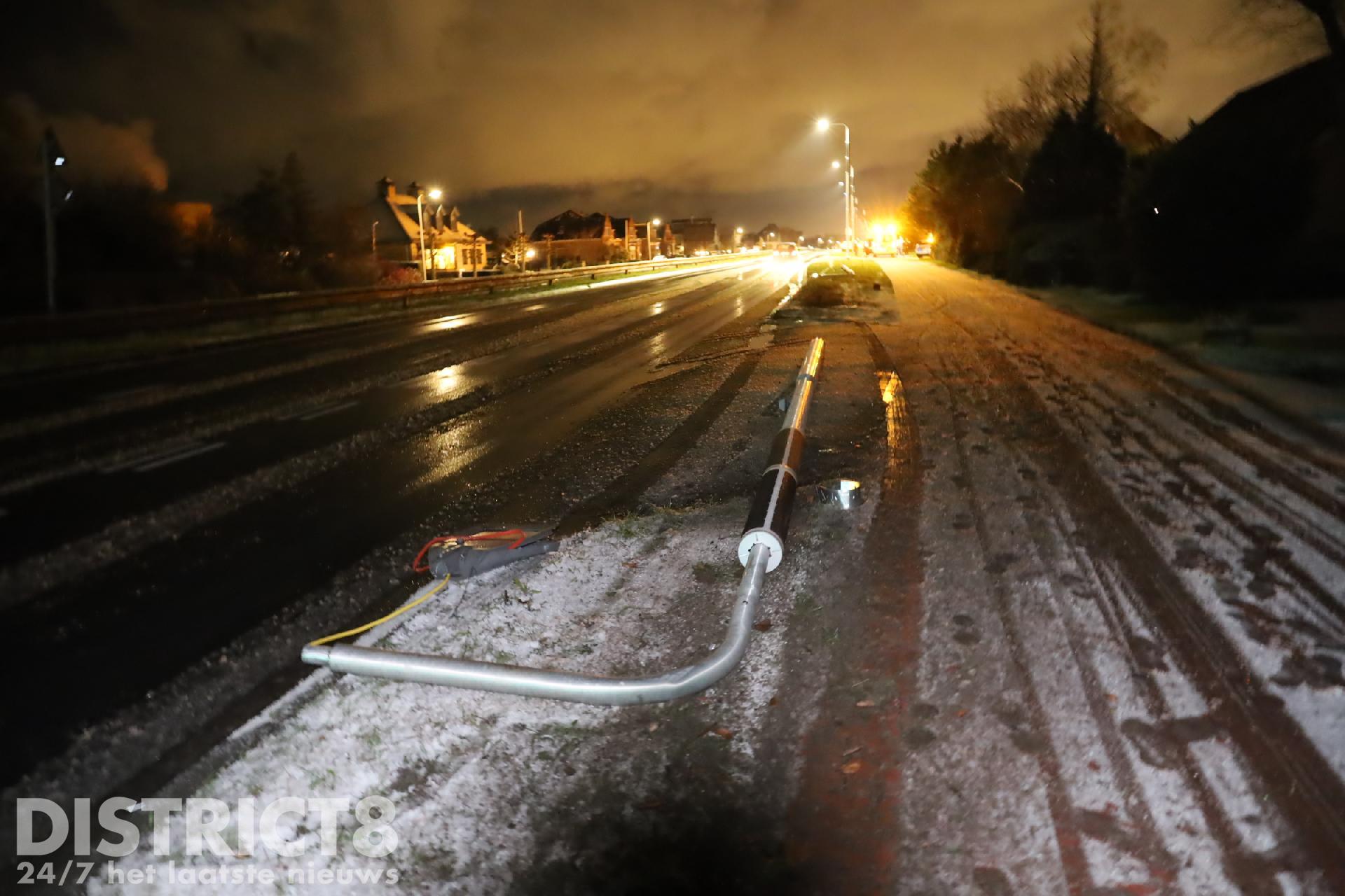 Busje ramt lichtmasten door gladheid Nieuweweg(N211) Poeldijk