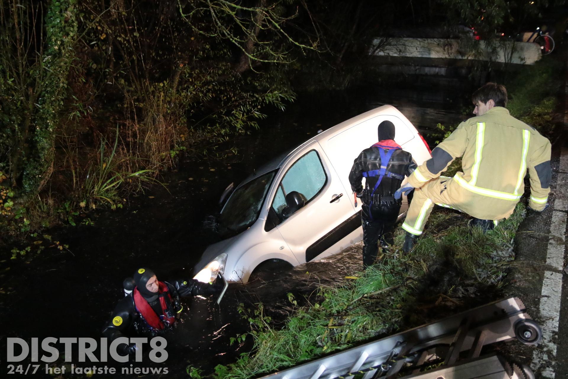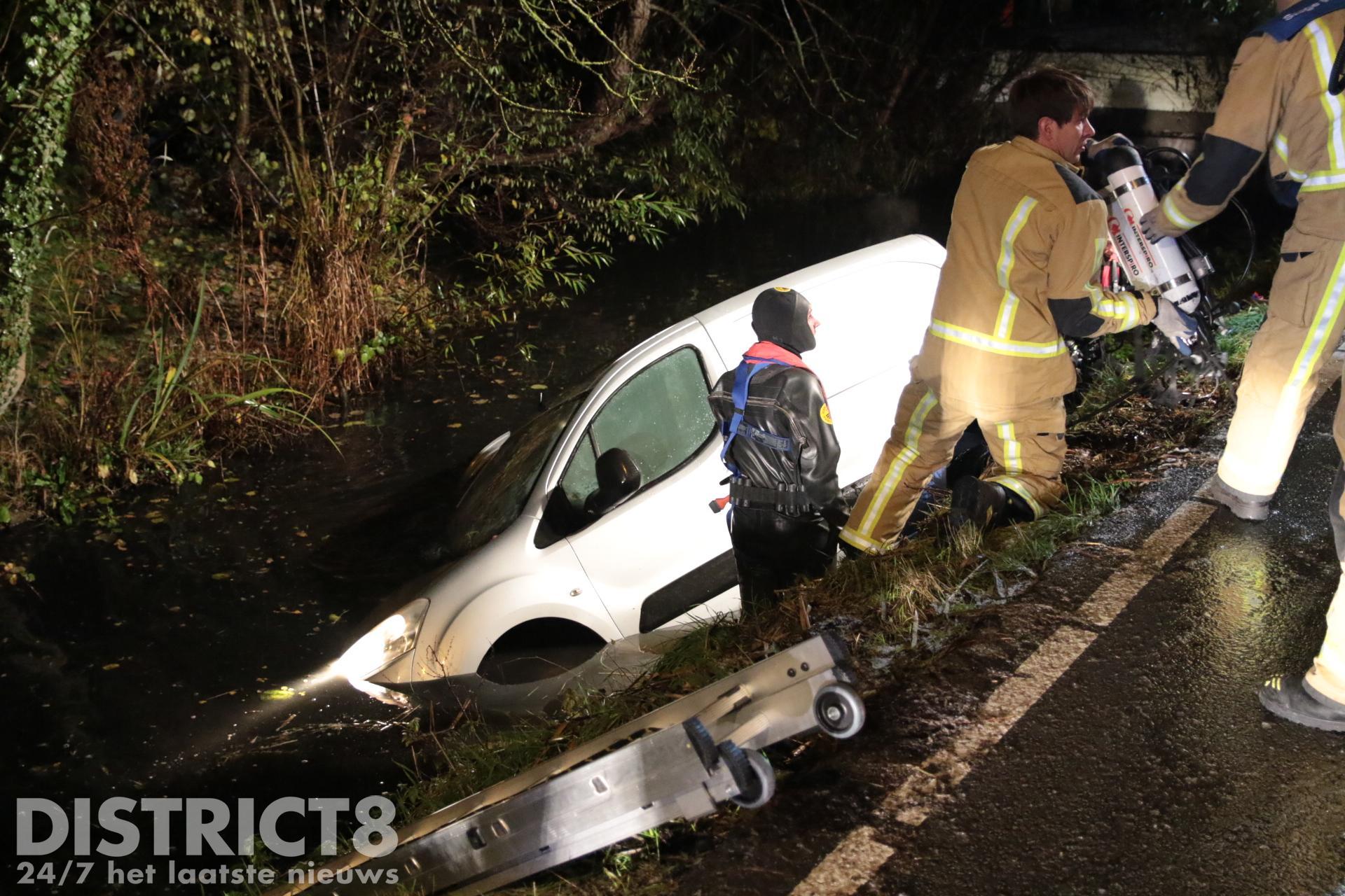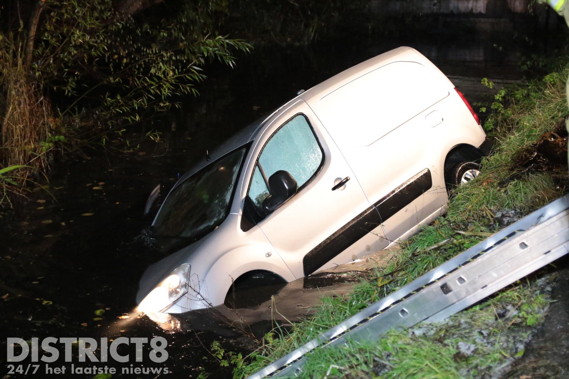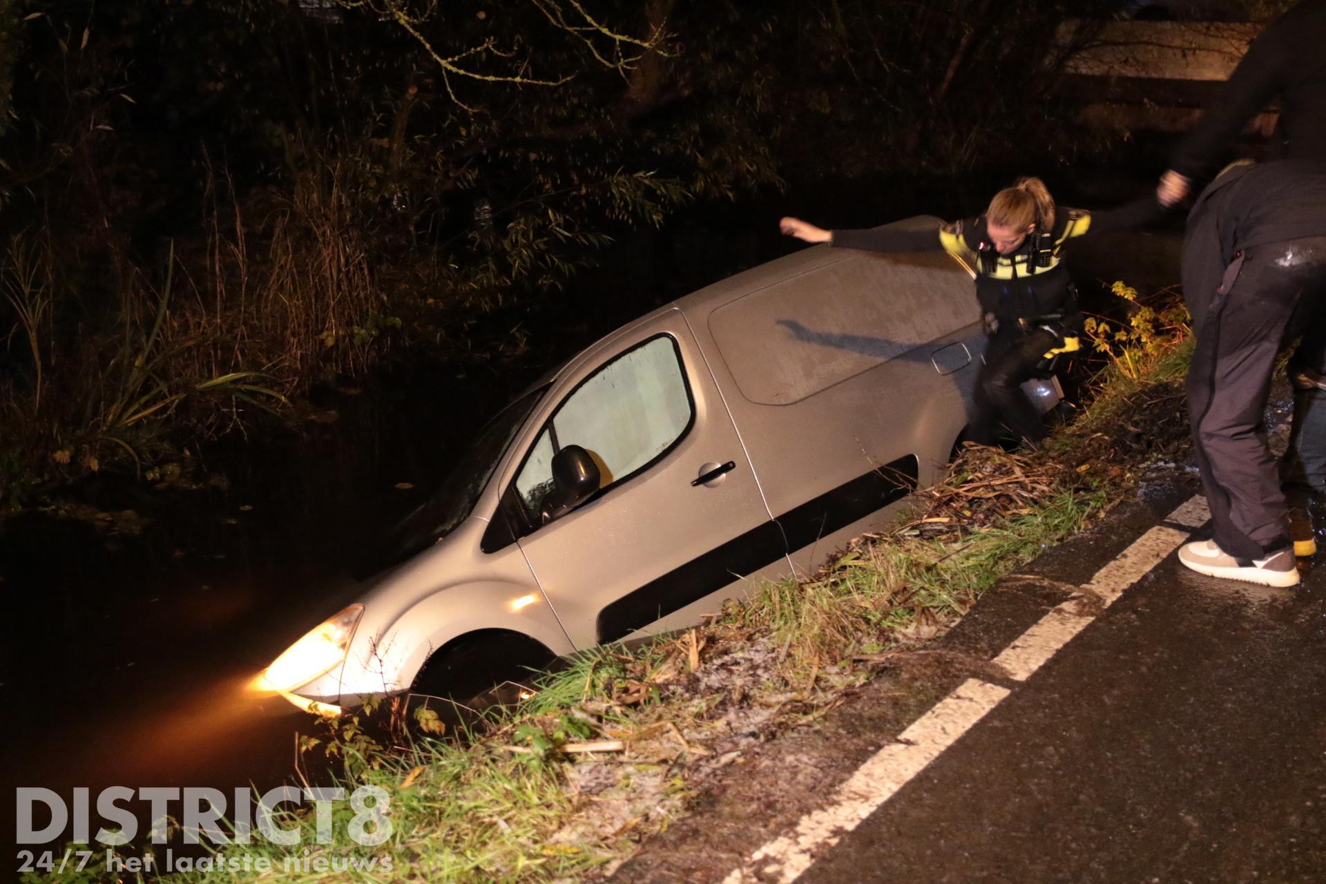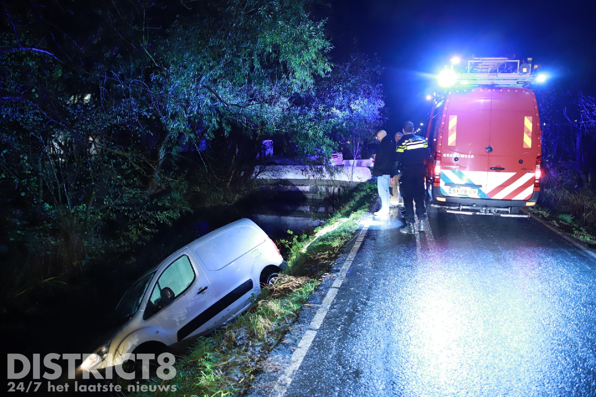 Busje te water door flinke gladheid Abtswoude Delft
