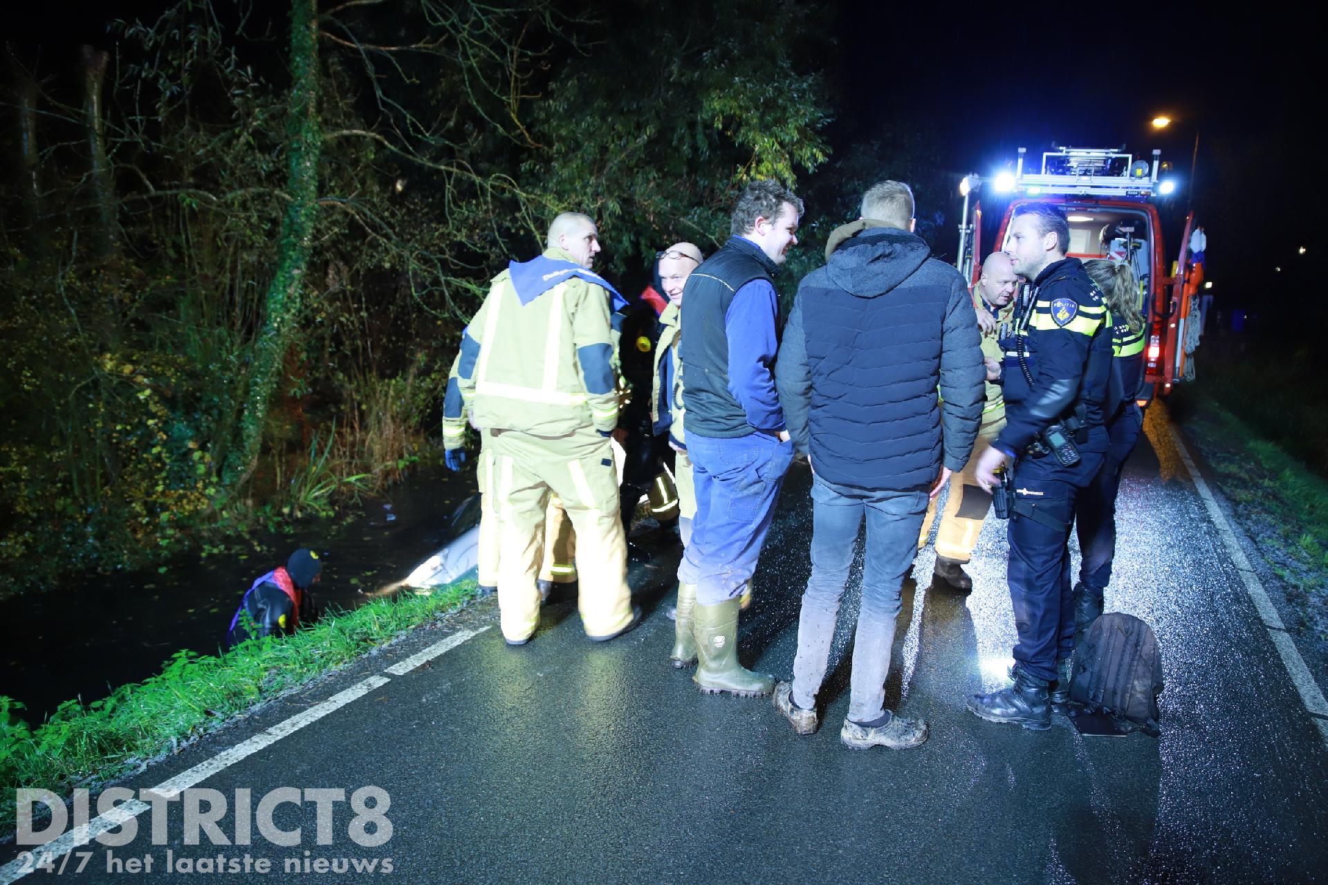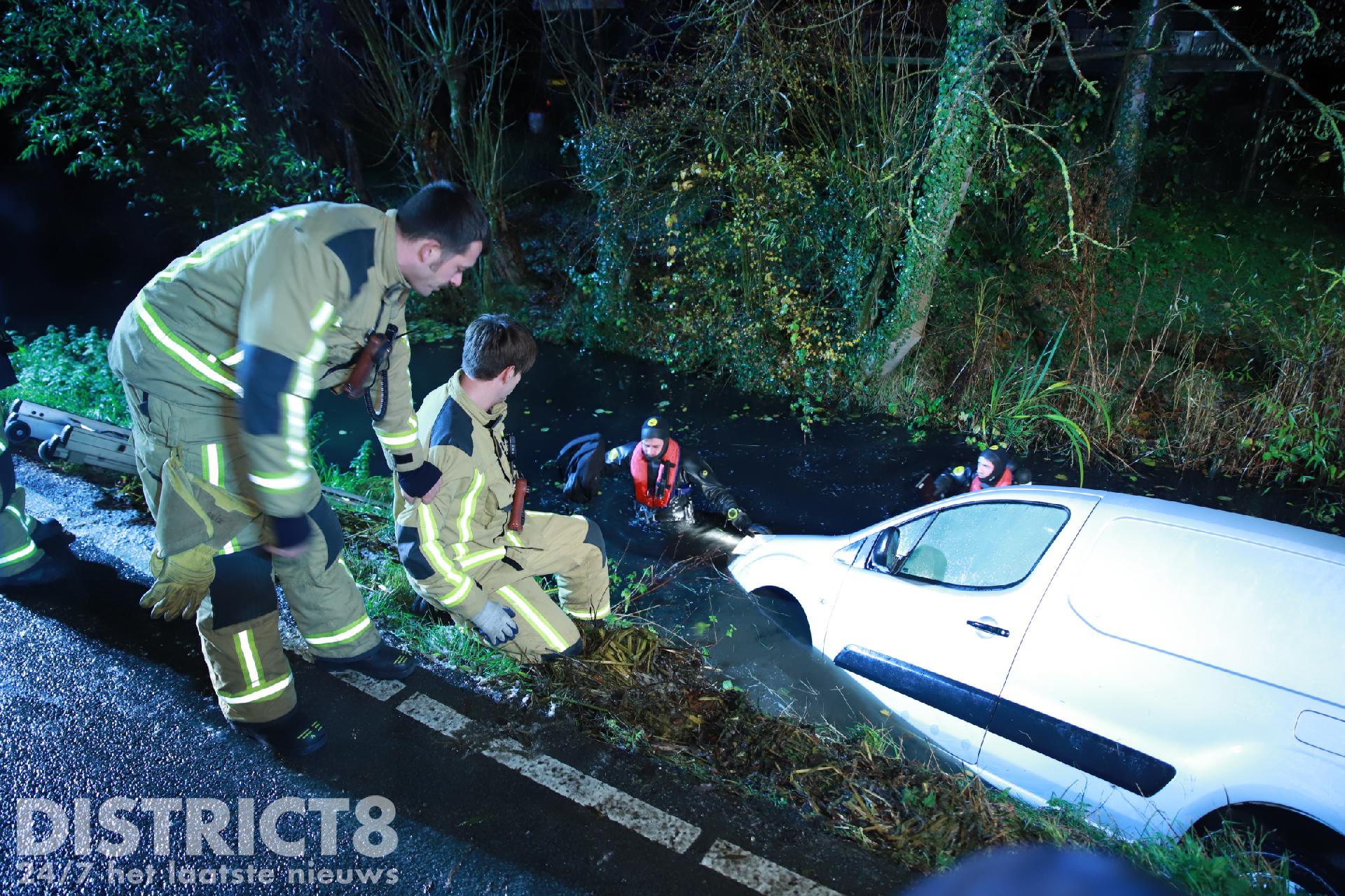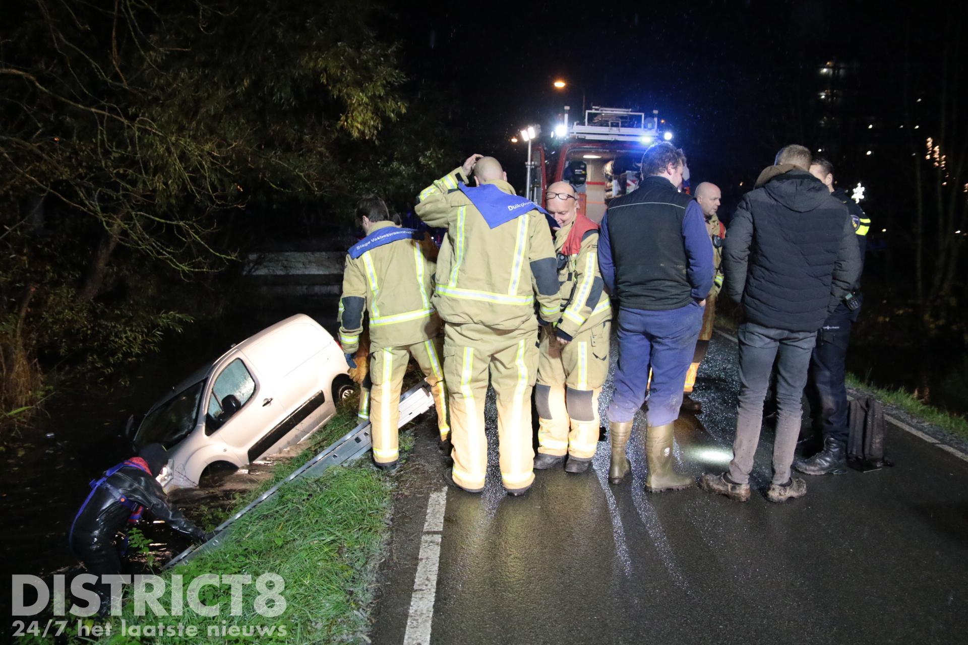 Even na zeven uur ging het mis. Een automobilist werd op het Abtswoude verrast door de gladheid en kwam in de slip terecht. Hij belandde naast de weg en dook de sloot in. Gelukkig wist hij zelfstandig zijn auto te verlaten. Omdat het niet zeker was voor de melder of iedereen uit de auto was, werden er verschillende hulpdiensten gealarmeerd. De duikers van de brandweer hebben in het water en in de auto gezocht naar mogelijke slachtoffers. Deze werden niet aangetroffen. Het busje is door een lokale boer uit het water gehaald met een graafmachine.