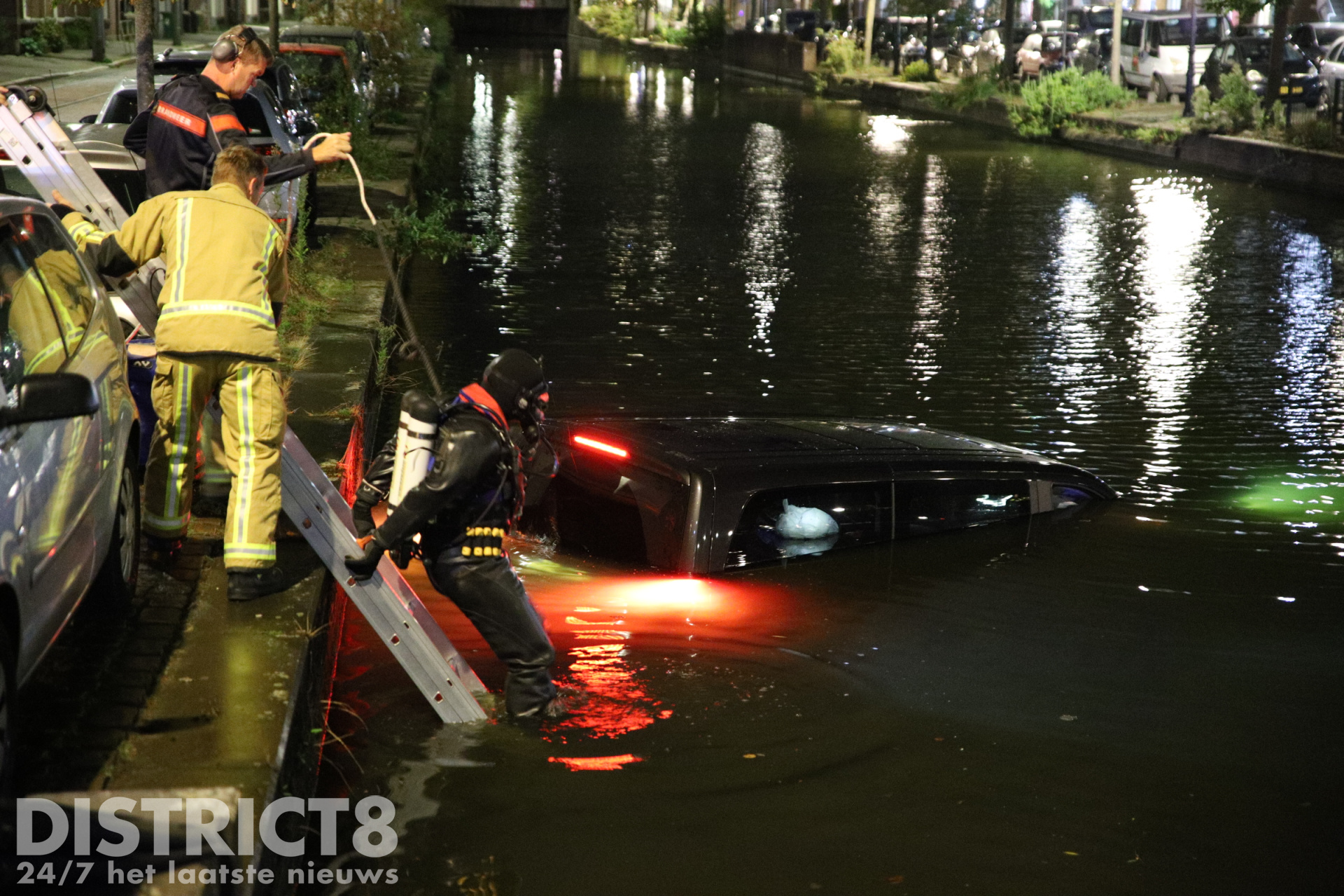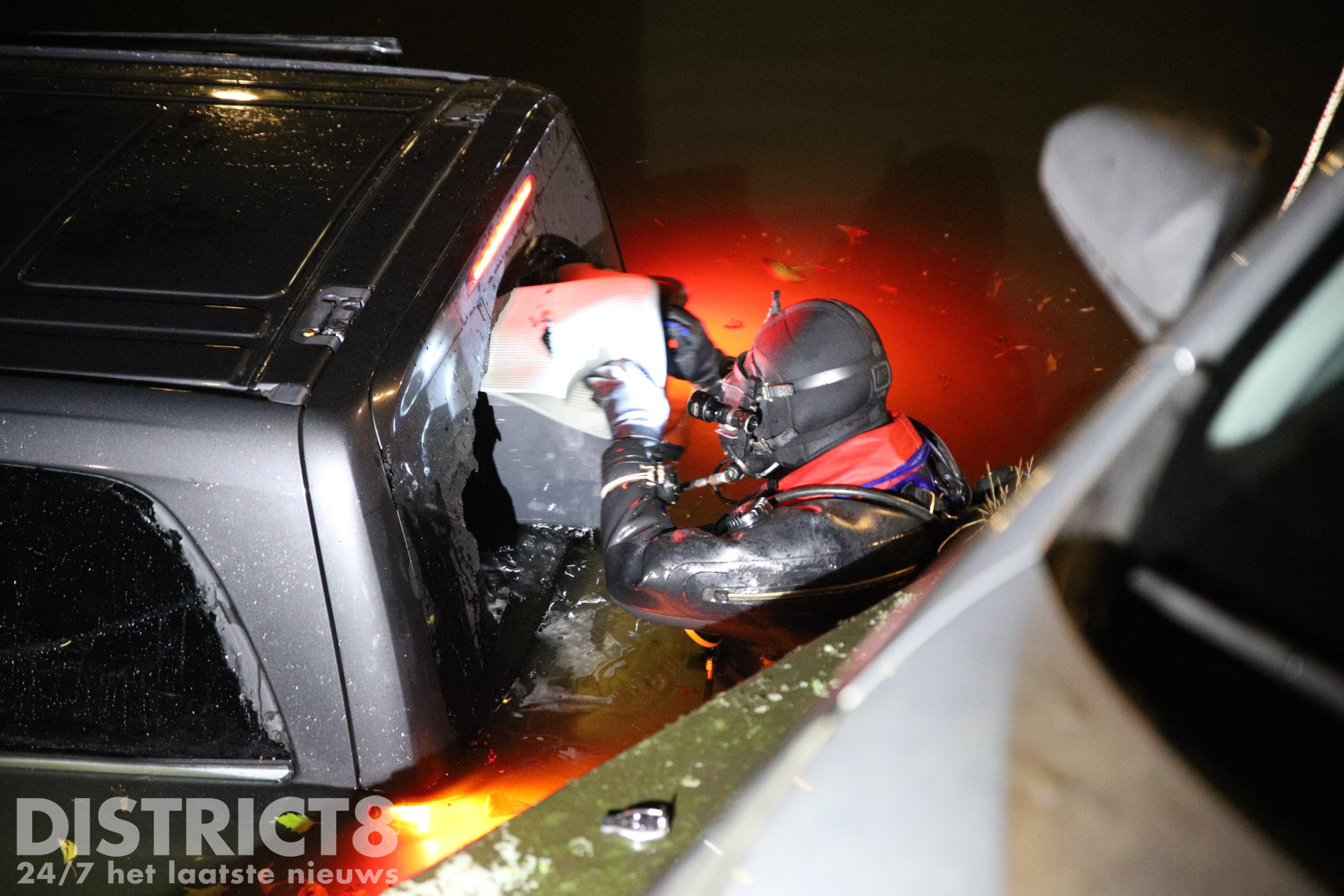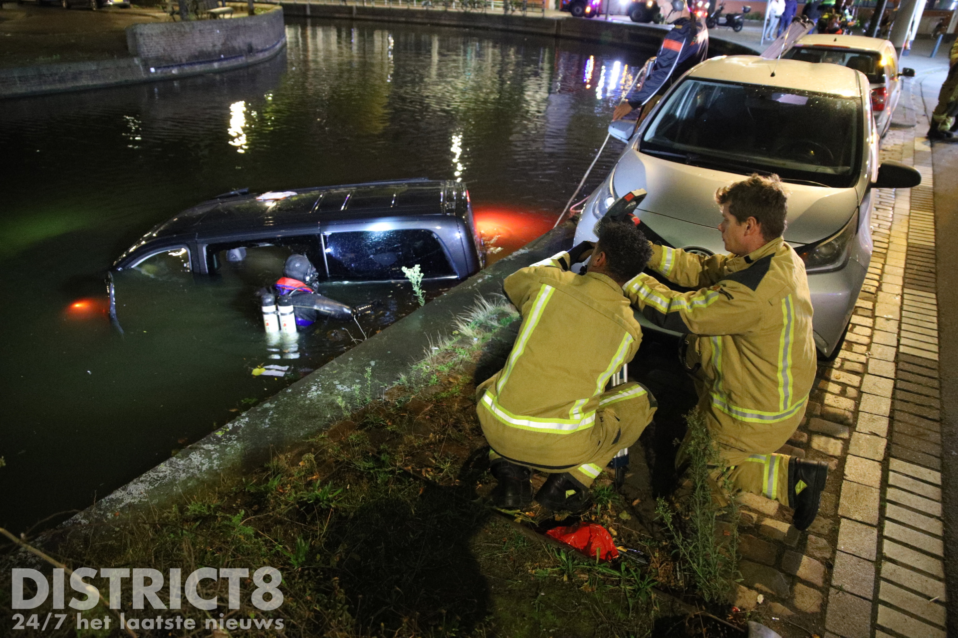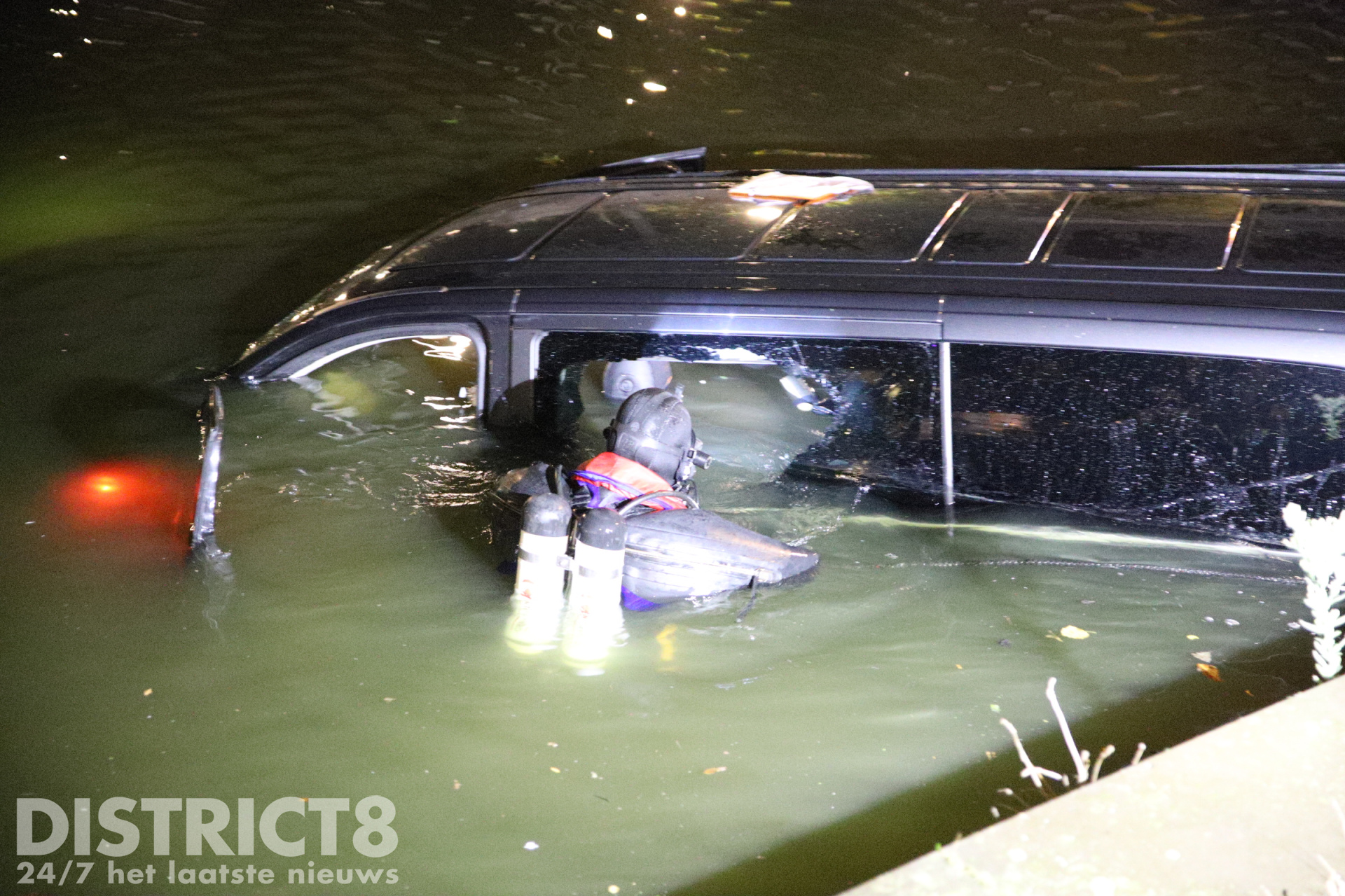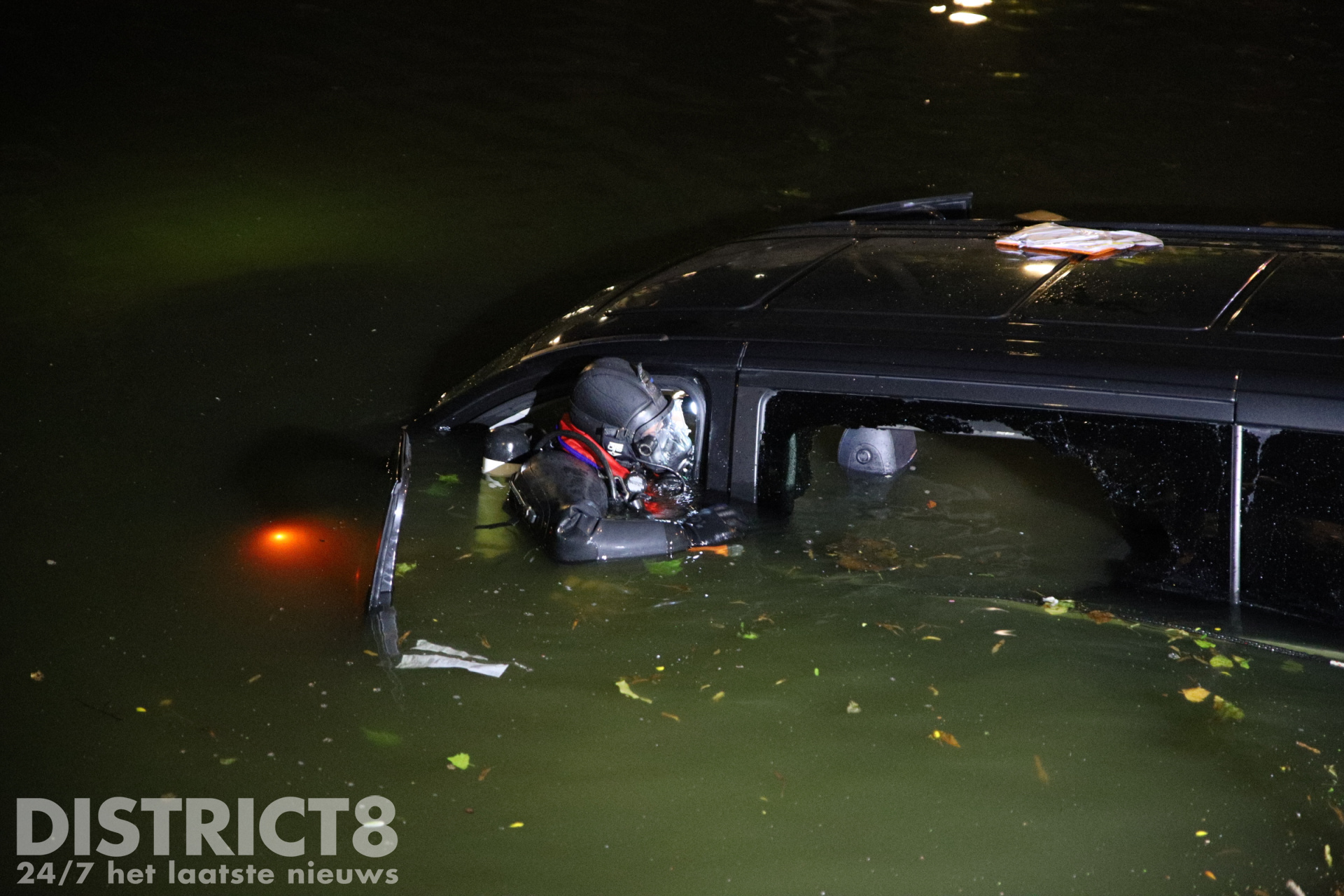 Een brandweerduiker heeft de ruiten van het in het water liggende voertuig ingeslagen om te controleren of er nog andere inzittenden aanwezig waren. Er is uiteindelijk niemand in het voertuig meer aangetroffen.