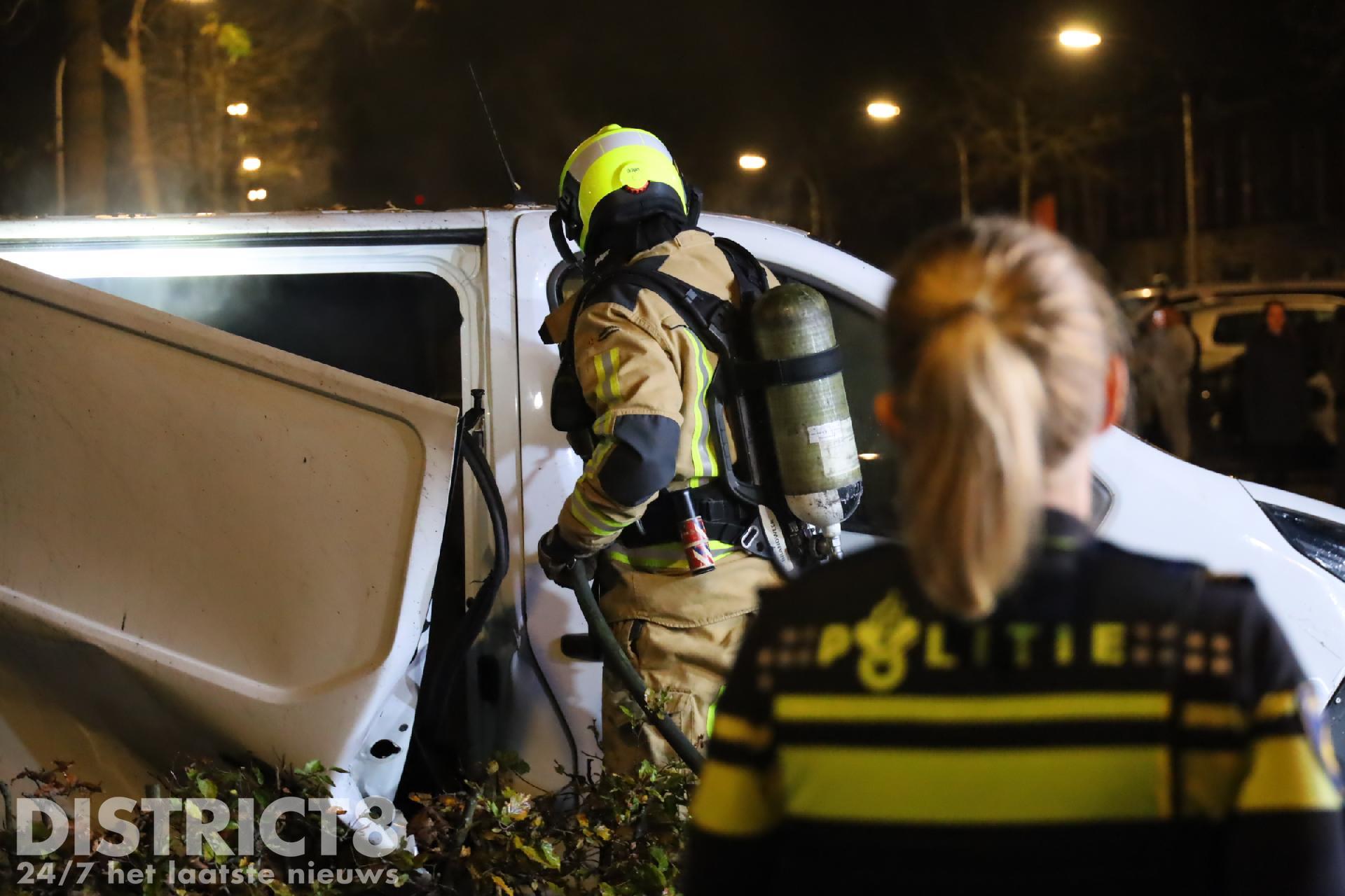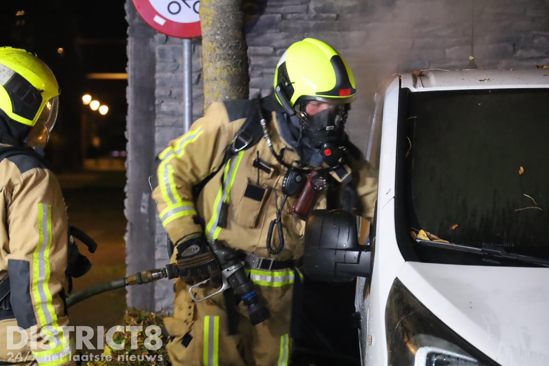 De brand heeft ook een naast geparkeerd voertuig aangestraald. De brandweer kwam met spoed ter plaatse.