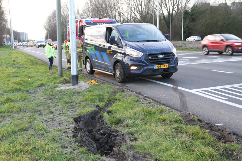 De bestuurder van het busje zag een beestje op de straat liggen en twijfelde geen moment en stuurde zijn voertuig in de berm, echter was de berm zo zacht dat het voertuig deels wegzakte. De brandweer van kazerne Delft werd gealarmeerd om het voertuig weer los te trekken, dit gebeurde met de tankautospuit. Het overige verkeerd ondervond enige hinder.
