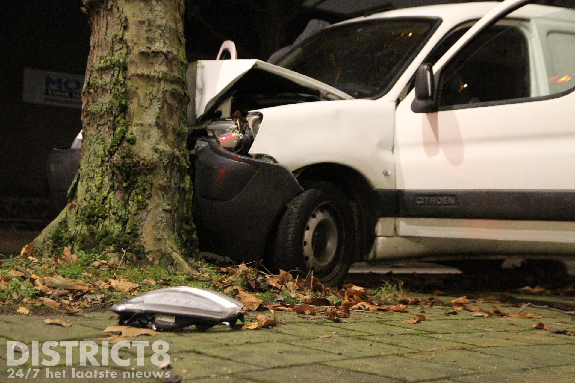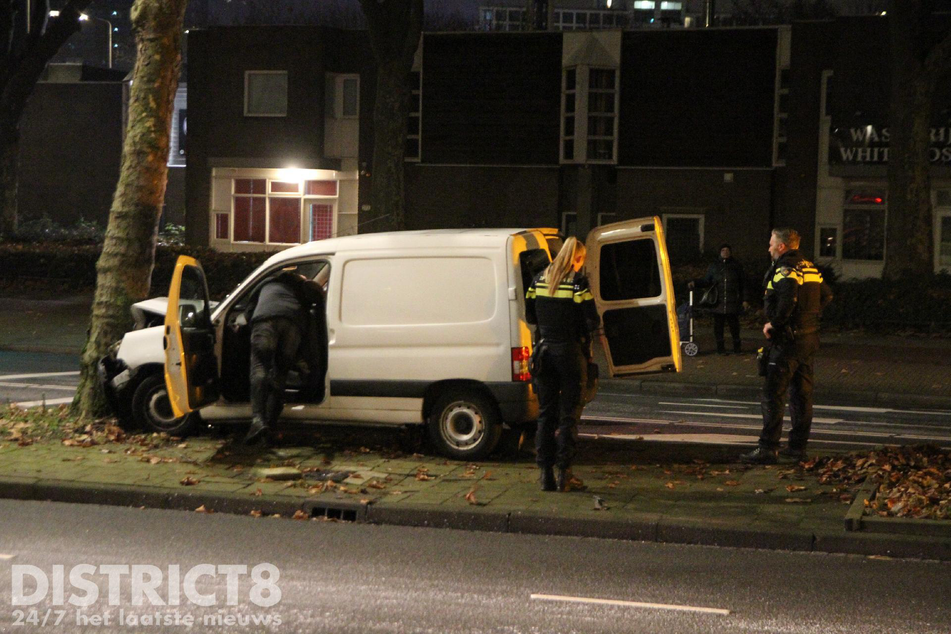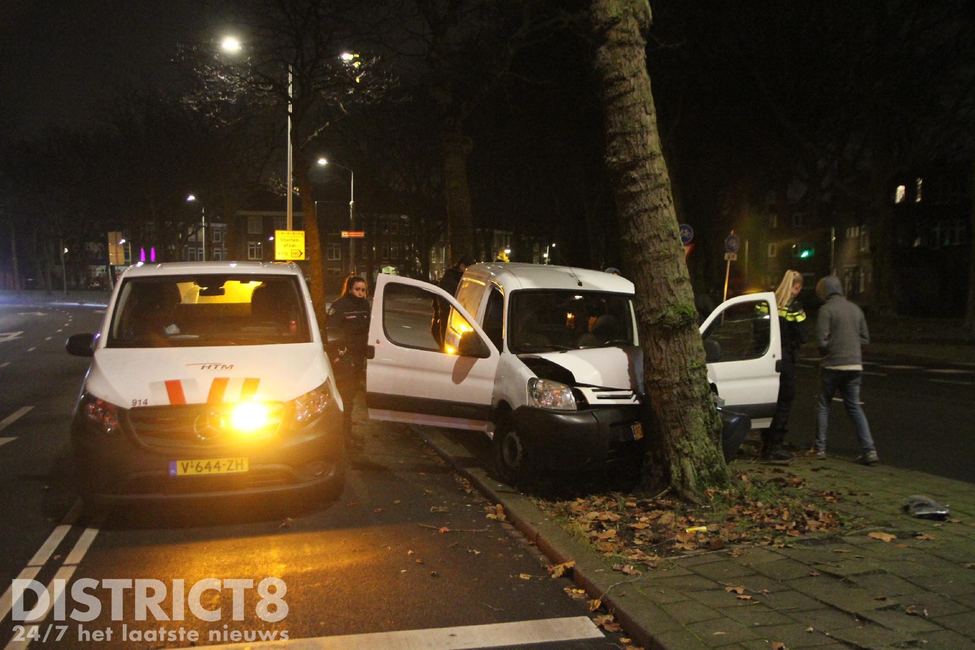Busje vliegt uit de bocht en knalt tegen boom Binckhorstlaan Den Haag