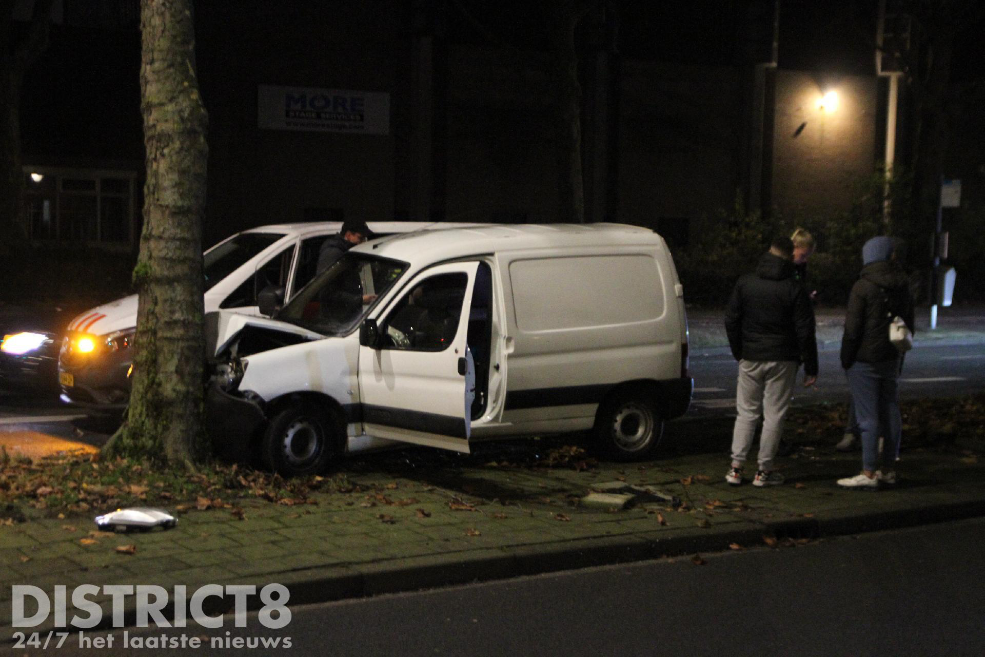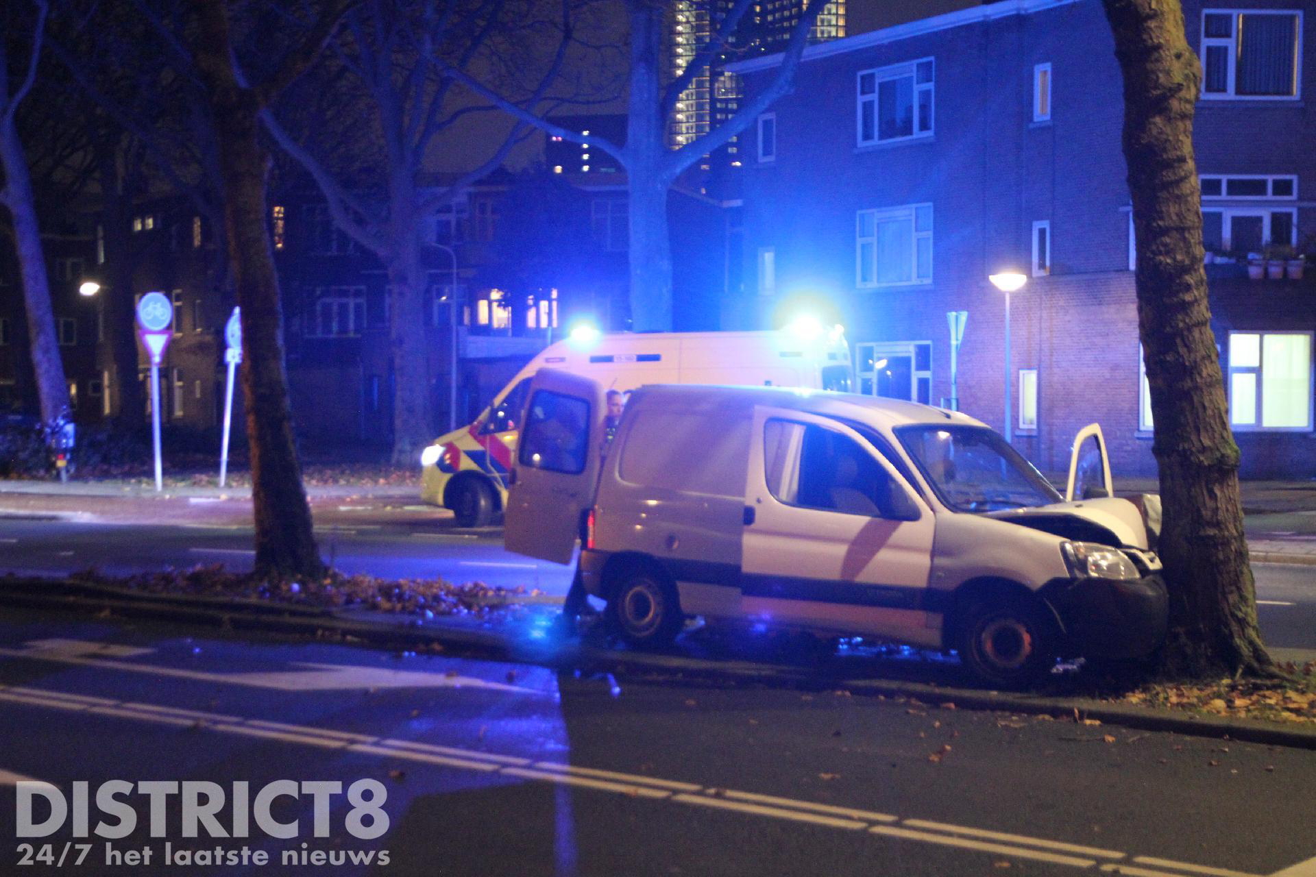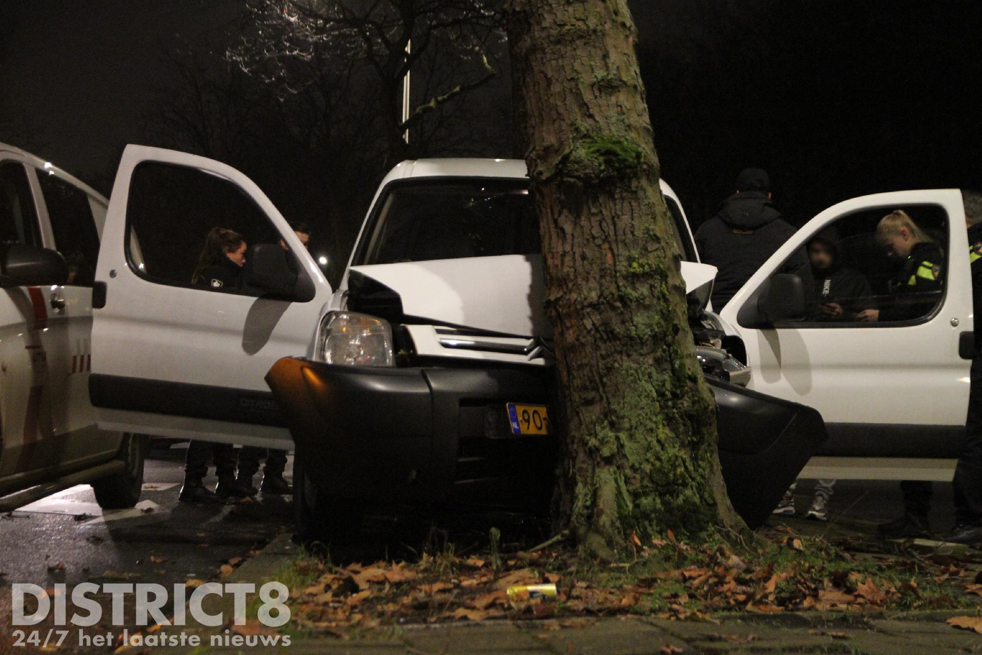 Busje vliegt uit de bocht en knalt tegen boom Binckhorstlaan Den Haag