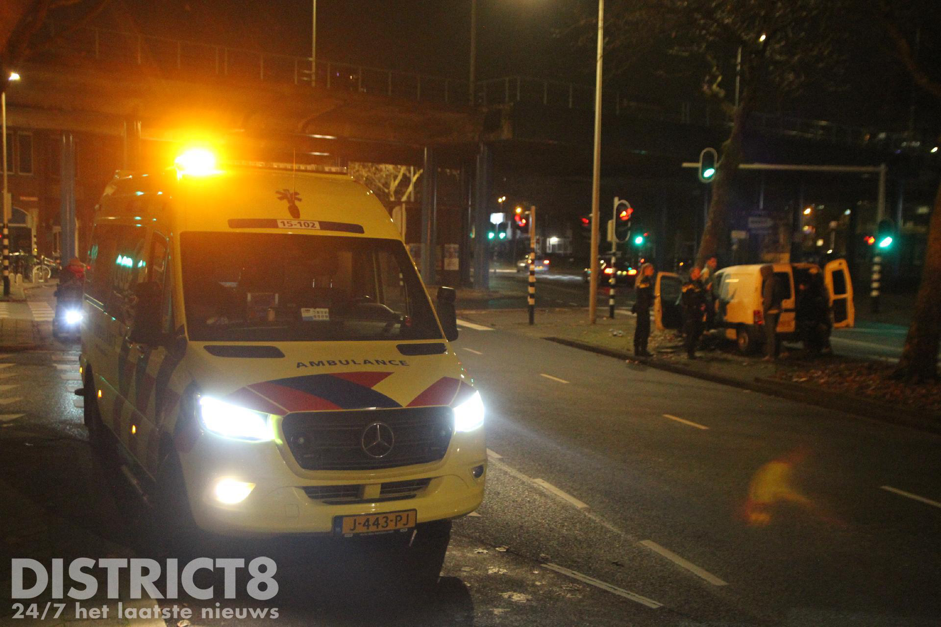 Even voor half elf ging het mis. De bestuurder van het busje raakte de macht over het stuur kwijt op de Binckhorstlaan ter hoogte van de Weteringkade in Den Haag. Het busje kwam in de middenberm terecht en kwam tegen een boom tot stilstand.