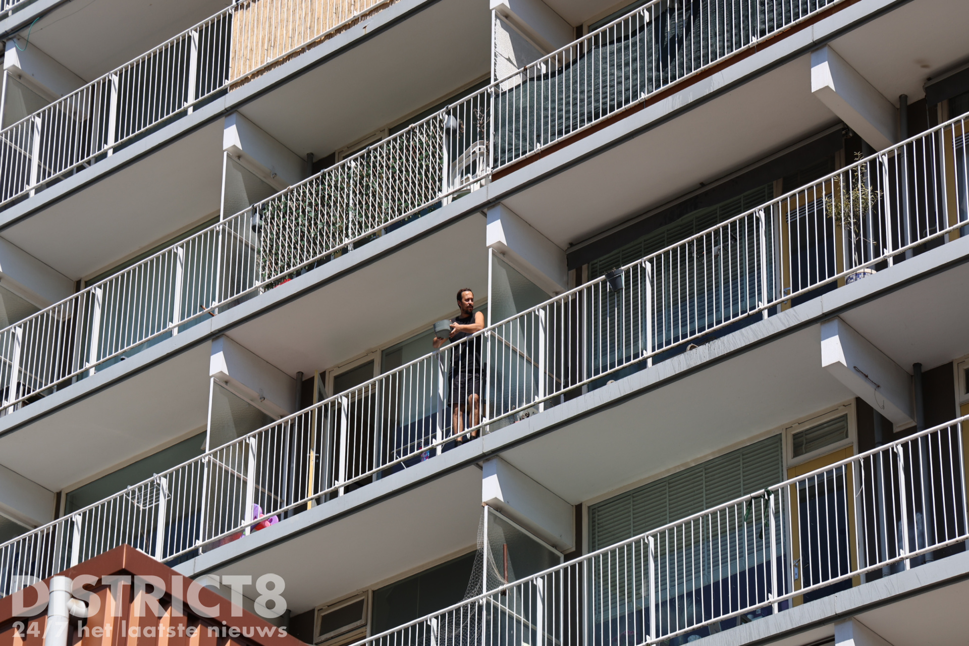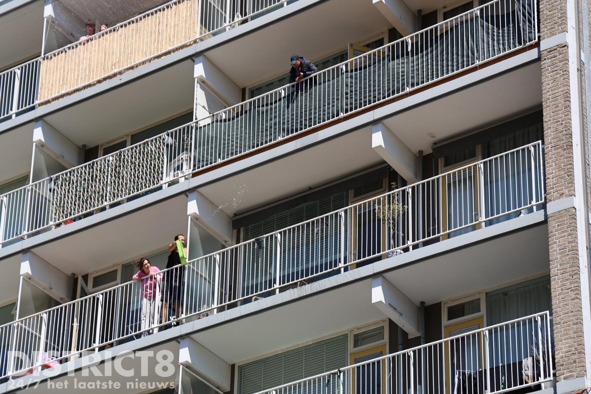 Toen de hulpdiensten arriveerden, waren de buurmannen al bezig om de brand uit te krijgen. Vanaf hun eigen balkon konden zij met een bak gevuld met water de brand bestrijden.