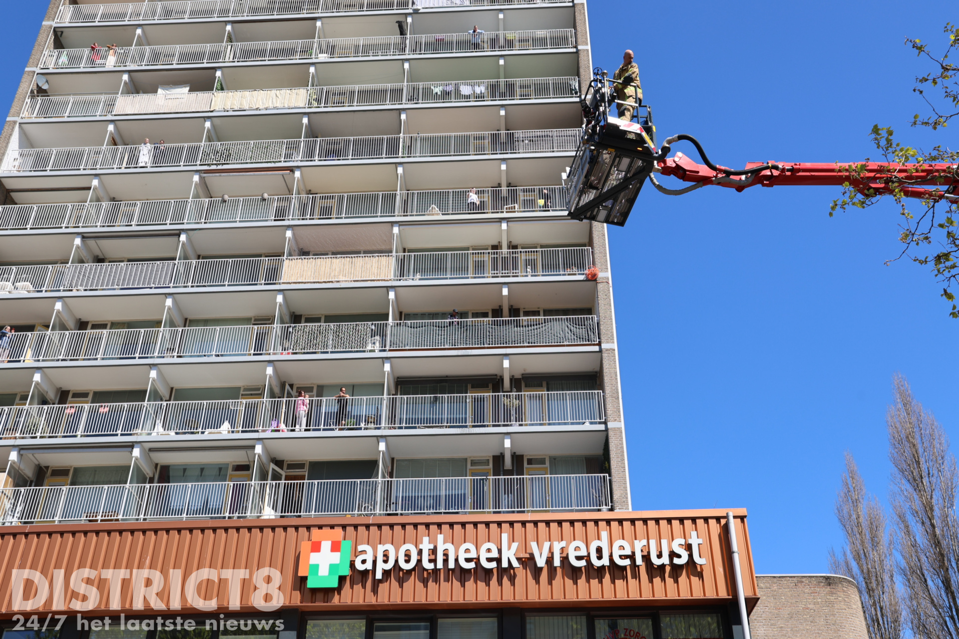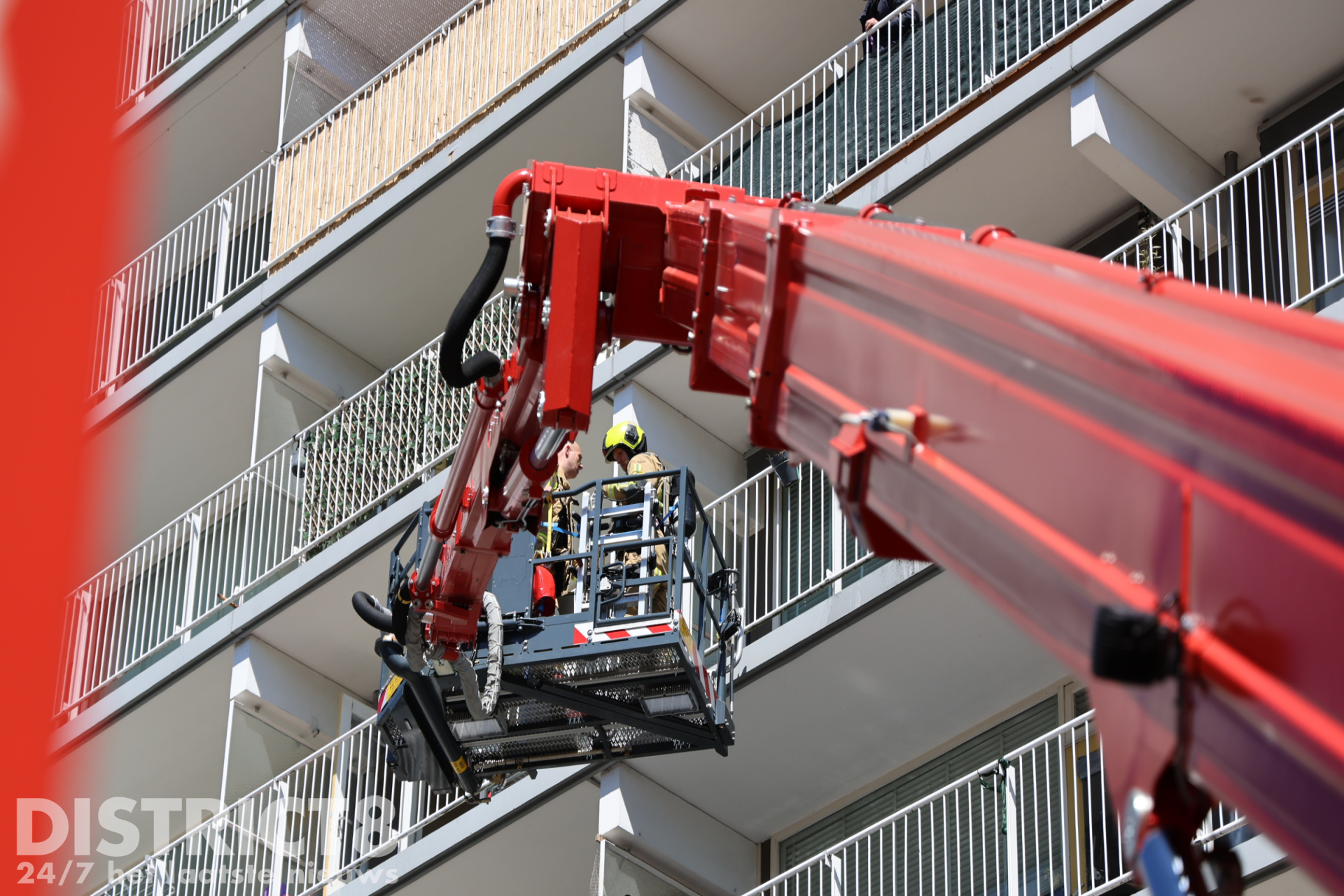 Hierdoor kon erger worden voorkomen. Door middel van de hoogwerker heeft de brandweer op het balkon gekeken om er zeker van te zijn dat de brand uit was.