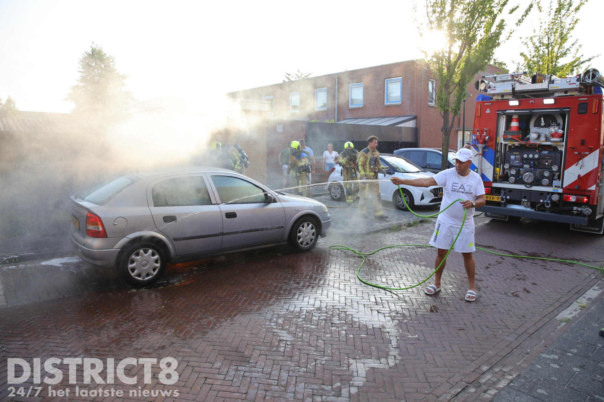 Buurtbewoners blussen autobrand na ongelukje tijdens aansteken BBQ Berlijnstraat Den Haag