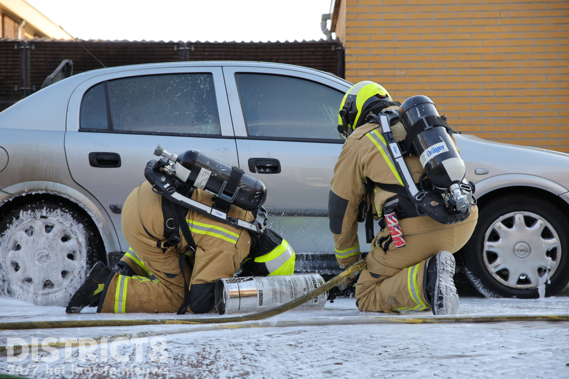 Ondanks de bluspogingen van de buurtbewoners en de brandweer kan de auto als total loss worden beschouwd.