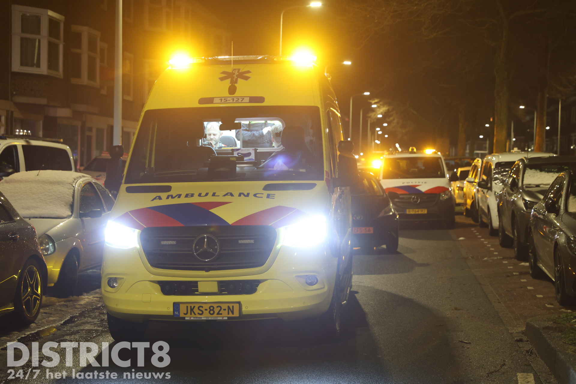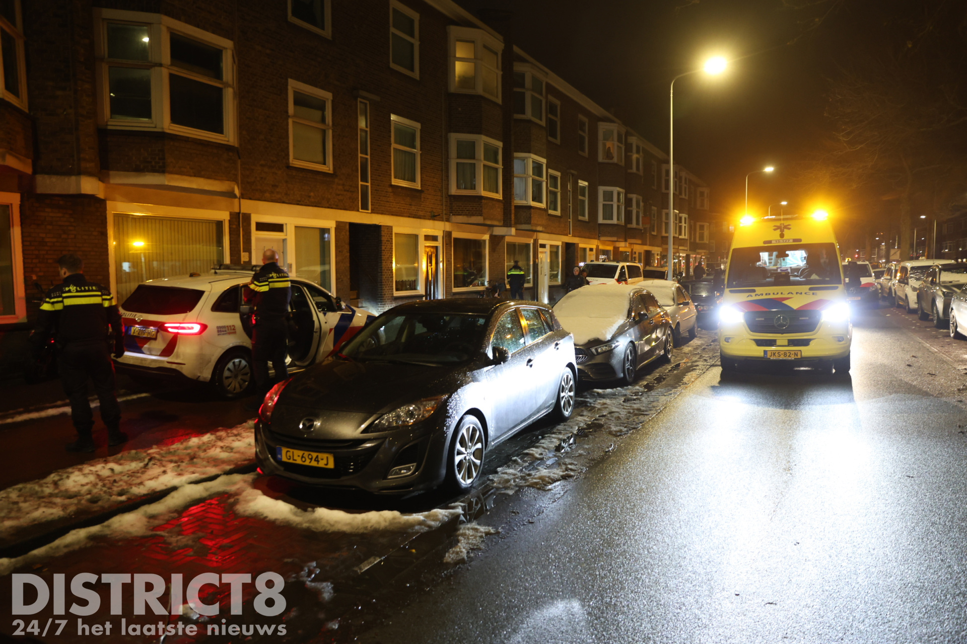 De verdachte is geboeid overgebracht naar het politiebureau. Het slachtoffer is per ambulance naar het ziekenhuis vervoerd.