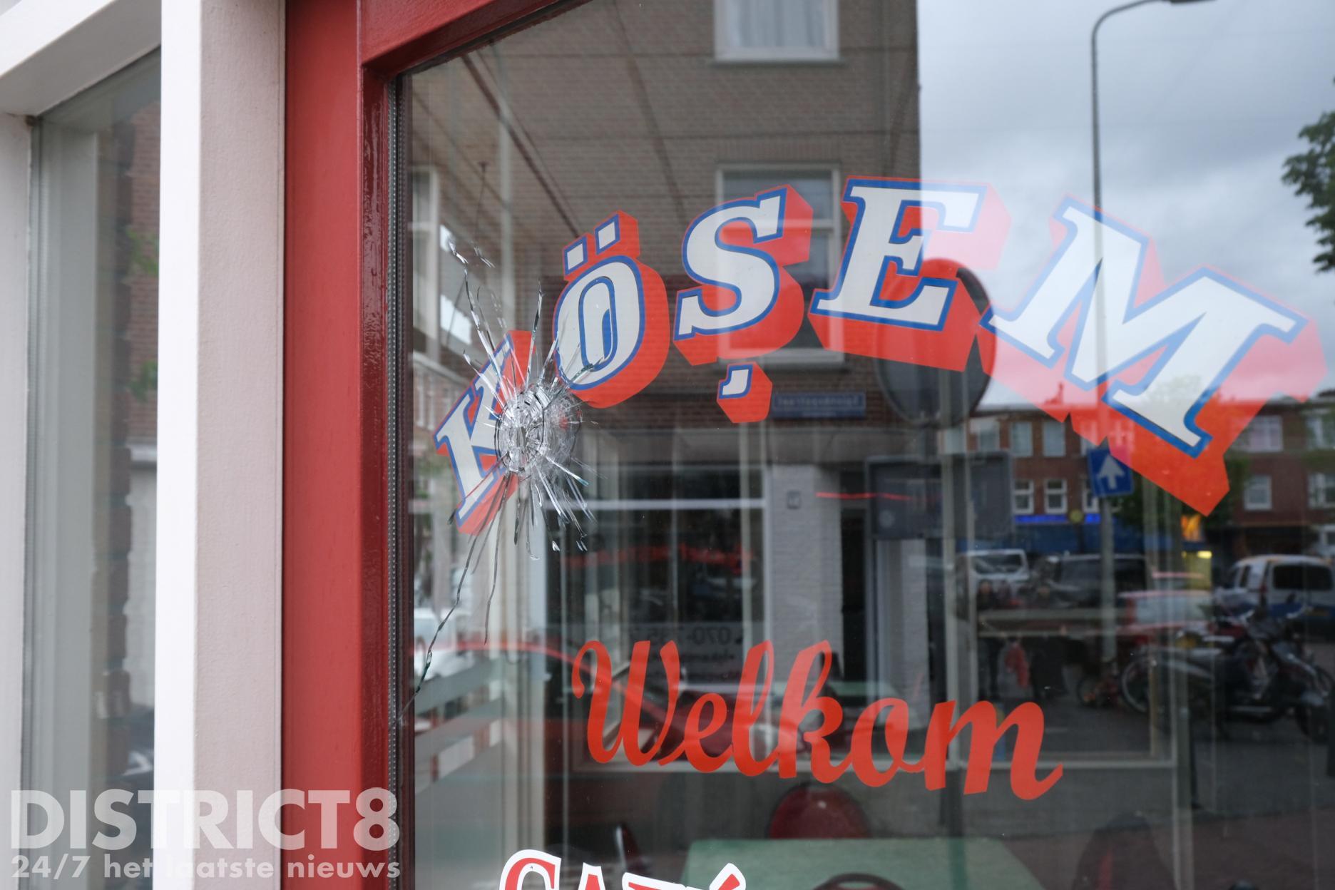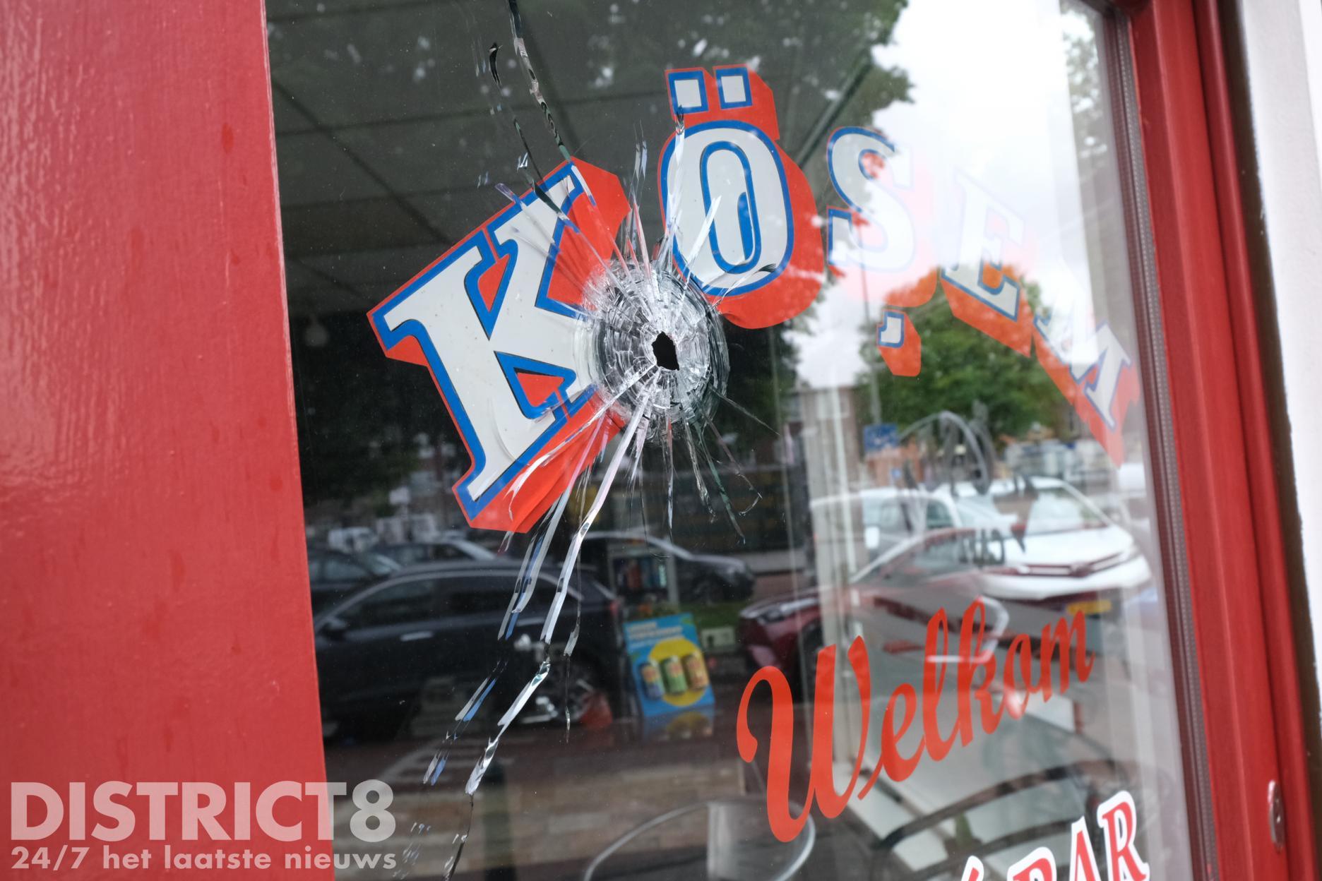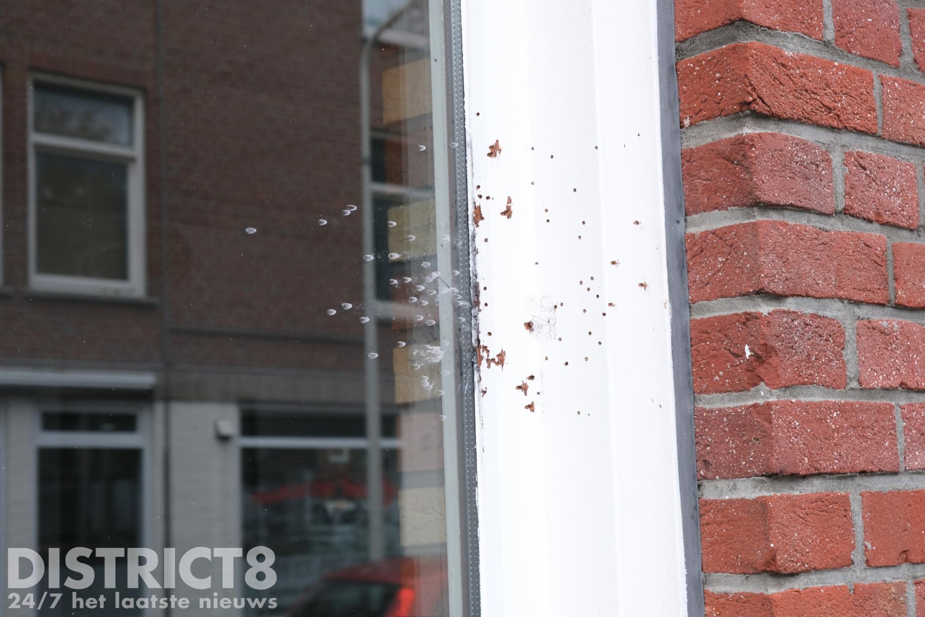 Over de aanleiding is nog niets bekend. In het raam van het pand zitten twee kogelgaten. Ook aan de achterkant van het pand zijn beschadigingen zichtbaar, vermoedelijk van een hagel kogel.