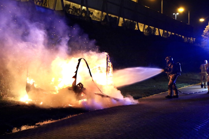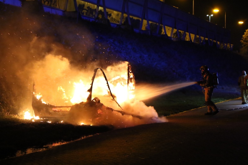 Even na middernacht kwam er bij de meldkamer van de brandweer de melding dat er aan de Hoflaan in Delft een voertuig in brand zou staan.