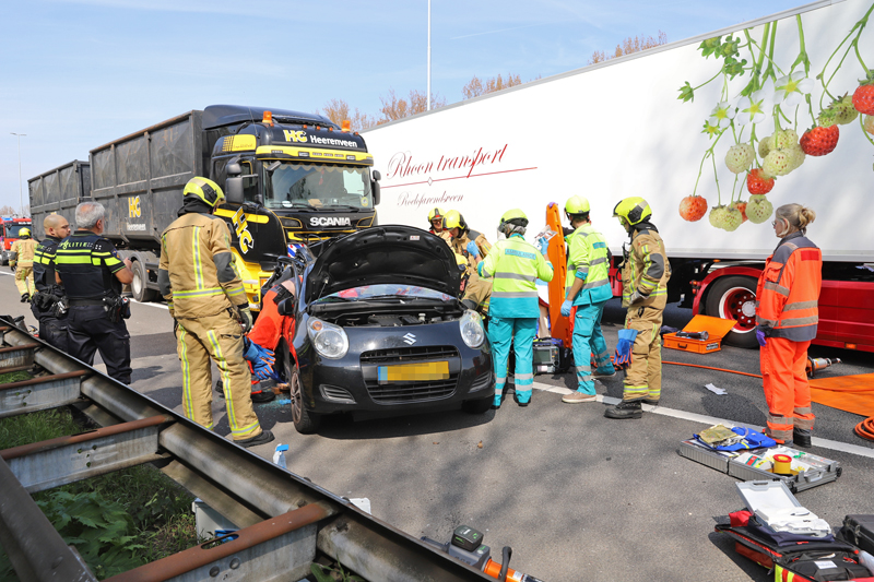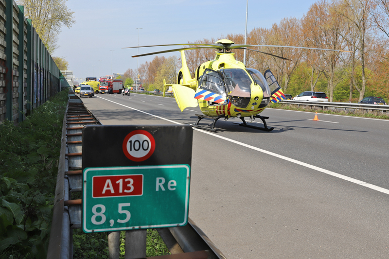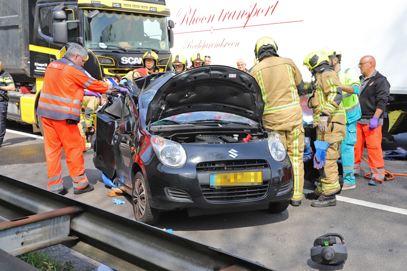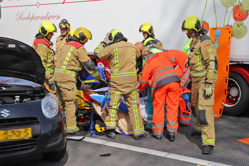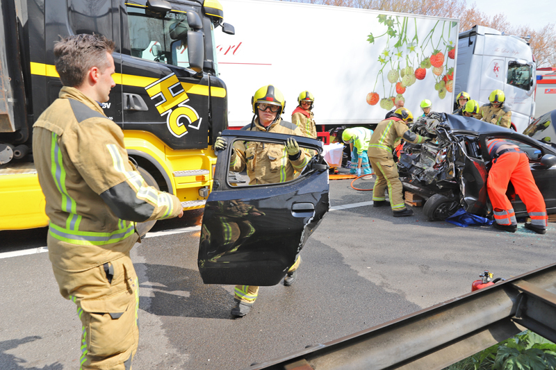 De brandweer heeft het slachtoffer uit de auto moeten halen. Ambulancepersoneel krijgt assistentie van het Mobiel Medisch Team. De helikopter is op de snelweg geland. Het slachtoffer is na stabilisatie met spoed naar het ziekenhuis vervoerd.