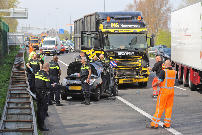 Delft – Op de A13 ter hoogte van Delft heeft dinsdagmiddag een ernstig verkeersongeval plaatsgevonden. Even voor twee uur kwamen een auto en een vrachtwagen met elkaar in botsing. Door de klap raakte de inzittende van de auto bekneld.
