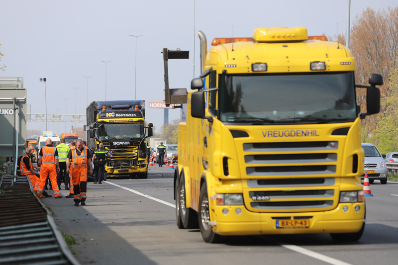 De vrachtwagenchauffeur is aangehouden en meegenomen naar het politiebureau voor een verklaring. De A13 richting Rotterdam is deels afgesloten, maar één rijstrook wordt gebruikt. Hierdoor ontstaat er een enorme file.