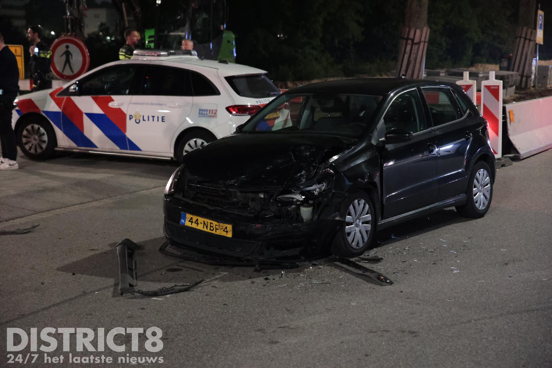 Even voor half twee ging het mis. Een automobilist kwam vanaf de Steenhouwersgaarde. De automobilist die onder invloed reed kwam met een flinke snelheid aan gereden op de Erasmusweg, met een botsing tot gevolg.
