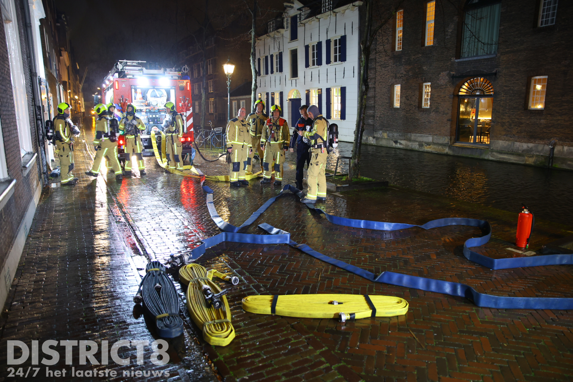 Delft – Een brand aan de Oost Indiëplaats (achter de Oude Delft) in de oude binnenstad van Delft is donderdagochtend 27 november opgeschaald naar ‘Zeer grote brand’. Wat omstreeks 05:00 uur begon als een containerbrand, verspreidde zich snel naar een nabijgelegen gebouw.