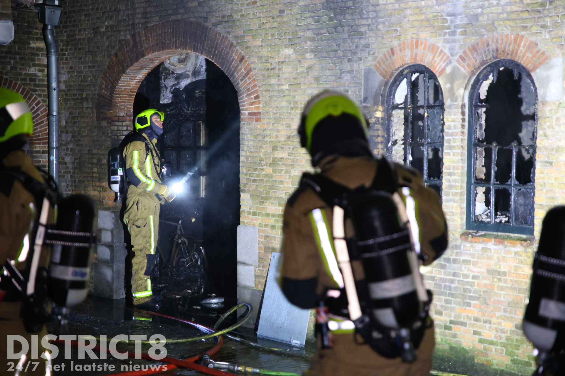 De brandweer is lange tijd druk bezig geweest om er zeker van te zijn dat de brand niet in de muren van de oudbouw geslagen was. Hiervoor werden eenheden uit onder andere Rijswijk, Den Hoorn, Wateringen en Leidschenveen ingezet.