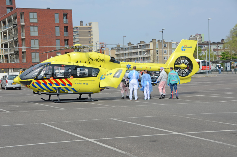 Vanaf het Hage ziekenhuis aan de Leyweg in Den Haag werd vanmiddag een patiënt overgebracht naar het Universitair Medisch Centrum in Groningen.