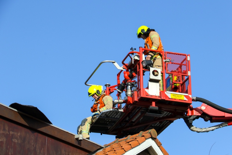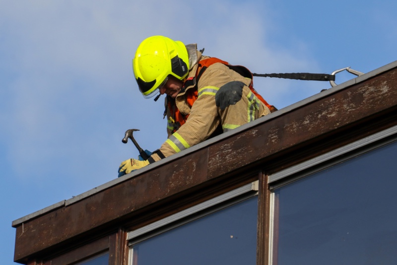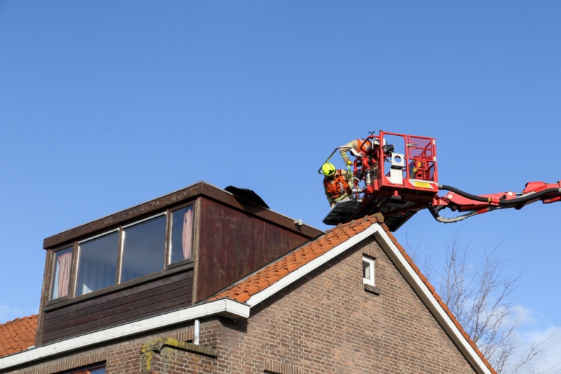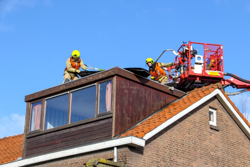 Omdat er een mogelijkheid was dat het hele deel los kwam, zou wegwaaien en op straat zou belanden werd de brandweer ter plaatse gestuurd. Vanuit de hoogwerker werd de dakbedekking weer terug geklapt om het vervolgens vast te spijkeren om zo verdere schade en gevaar te voorkomen.