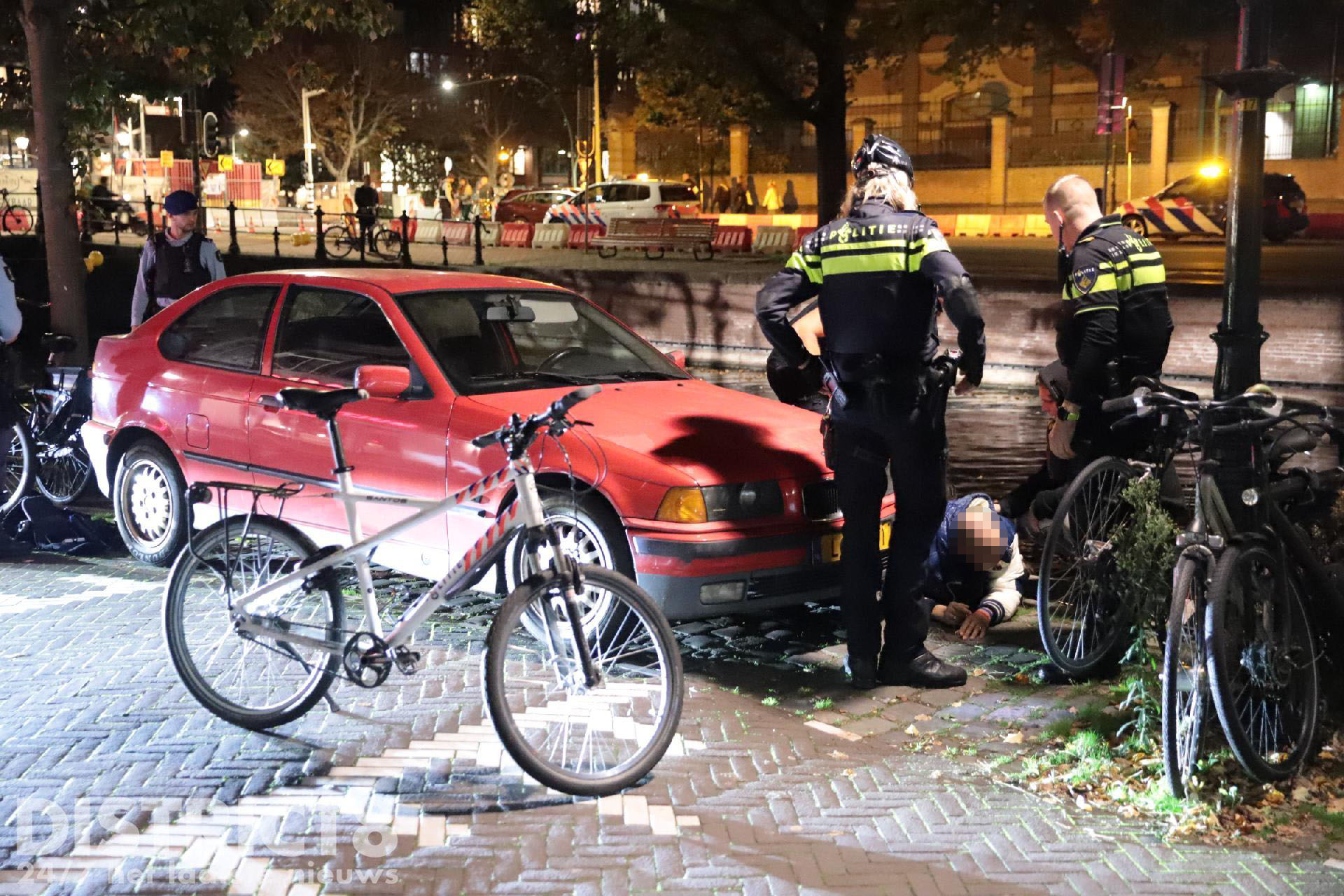 Twee leden van de Koninklijke Marechaussee sprongen hierop het water in. Een agent en een fotograaf van deze website, welke bij het ongeval aan de Prinsessewal stond, aarzelde geen moment en trokken de man vanuit het water de kade weer op.